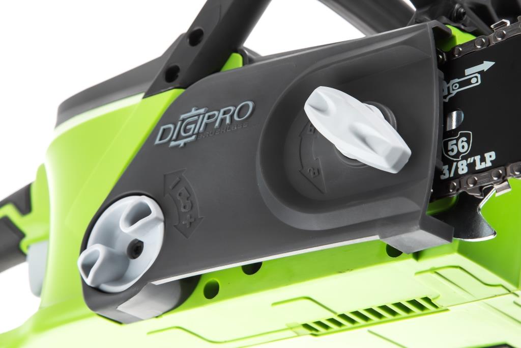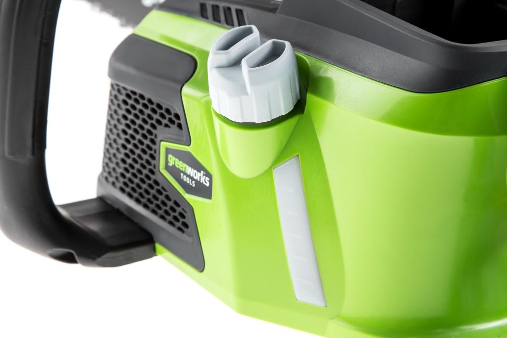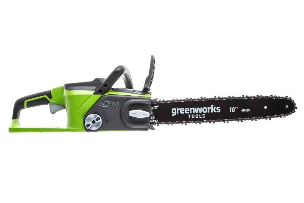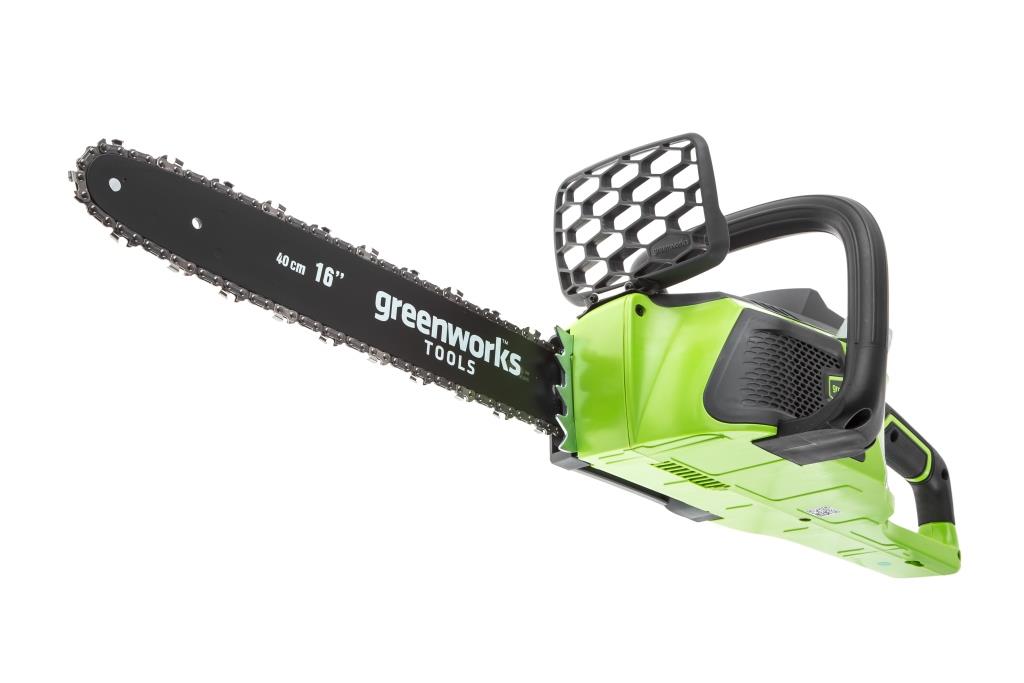Цепная аккумуляторная пила 40 вольт GreenWorks GD40CS40 - полупрофессиональная цепная пила, которая отлично подойдет для полноценного ведения дачного хозяйства. Ее надежный бесщеточный двигатель сопоставим по мощности с бензиновыми аналогами на 1,2-1,5 л/сил. При этом электродвигатель пилы GreenWorks абсолютно экологичен, имеет высокий крутящий момент (пилит быстрее бензинового аналога), имеет низкий уровень шума и вибраций, а так же прост в эксплуатации потому, что не требует подготовки масло-бензиновой смеси и какого-либо обслуживания. Включение пилы производится одной кнопкой. Замена и установка цепи не требует инструмента. Данная модель обладает компактными размерами, небольшим весом и долгим автономным временем работы (до 110 спилов от 4 А/час батареи), что делает ее незаменимым помощником на даче и в лесу. Пила оснащена шиной (40 см) из кремнистой стали и цепью производства компании Oregon. Масляный бачок для смазки цепи имеет прозрачный корпус, чтобы вы всегда могли следить за уровнем масла. Для безопасности предусмотрен предохранитель включения и тормоз цепи. Для долговечной работы двигатель имеет защиту от перегрузки. Пила работает от аккумуляторной батареи G-MAX 40V, которую можно использовать с другими устройствами линейки 40V (15+ устройств). Преимущества модели: Мощный бесщёточный двигатель DigiPro; Компактный размер и малый вес; Время автономной работы до 110 спилов от 4 А/час батареи; Шина и цепь Oregon; Прорезиненная рукоятка; Без ключевая замена и натяжение цепи; Прозрачный масляный бачок - для удобного контроля уровня масла; Предохранитель включения и тормоз цепи; Защита двигателя от перегрузок; Работа от 40V аккумулятора совместимого с другими устройствами из линейки 40V; Гарантия 2 года. Состав комплекта: G-MAX 40V аккумуляторная цепная пила 40 см арт. 20077; Руководство по эксплуатации; Гарантийный талон. Внимание: этот комплект поставляется без аккумулятора и зарядного устройства. |