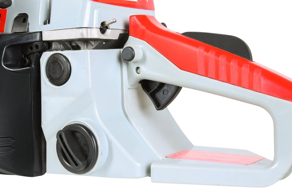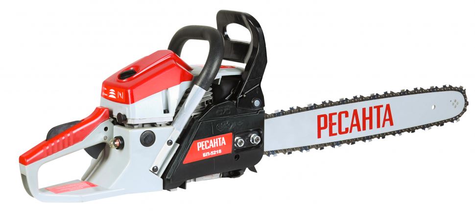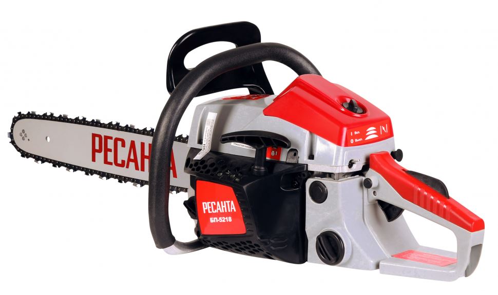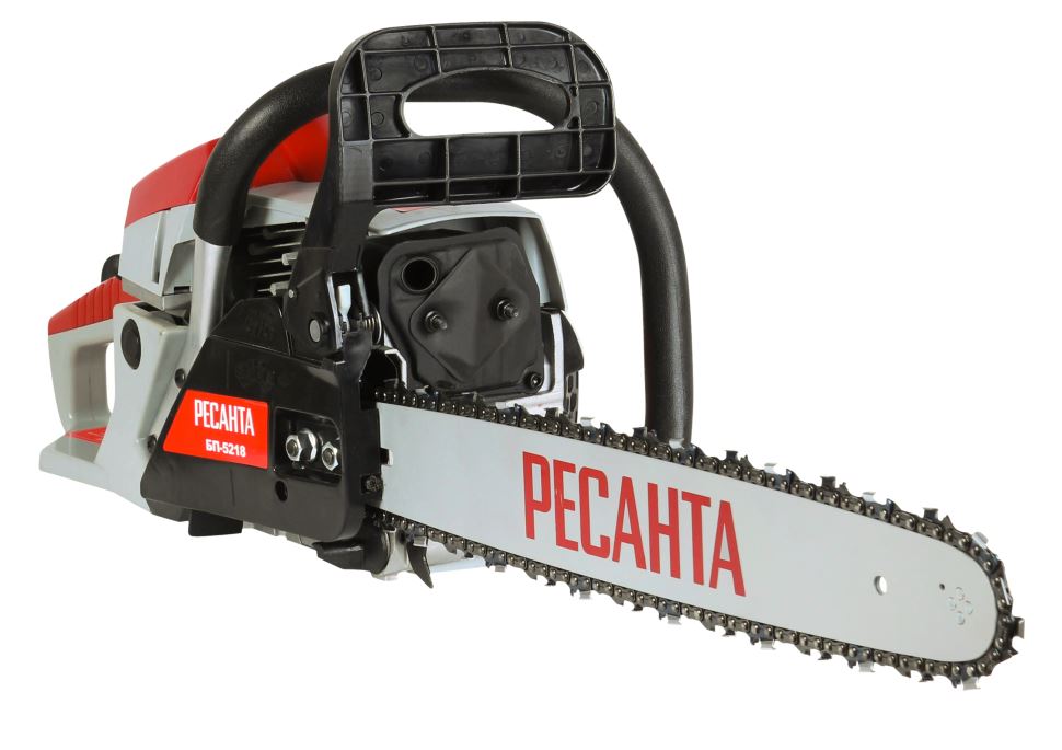 Бензопила БП-5218 Ресанта. Этот мощный агрегат обладает долговечной конструкцией, отличной маневренностью, позволит справиться с задачами любого уровня сложности. Новинка БП-5218 Ресантаимеет длину шины – 18 дюймов и количество звеньев цепи - 72 звена. Резиновые амортизаторы, расположенные между рукоятками и картером пилы, снижают вредную вибрационную нагрузку при работе с бензопилой, делают работу комфортнее. Масляный бак размещается в передней части картера. Принудительная смазка цепи и шины применяется для снижения трения между ними, что увеличивает срок службы пильной гарнитуры. Легкий старт влияет на скорость запуска, особенно в зимний период. Он добавляет дополнительный крутящий момент при рывке. Безопасности в этой модели уделено много внимания. Блокировки курка газа предотвращает случайное нажатие. Функция механического инерционного тормоза цепи также важна: при резком отскоке пилы во время пиления (вверх и назад) рука упирается в ручку тормоза и отщелкивает ее, а тормозная лента затягивается и тормозит барабан сцепления, цепь при этом останавливается практически мгновенно. Защитный щиток в случае разрыва цепи или ее соскока с шины предотвращает травмирование.