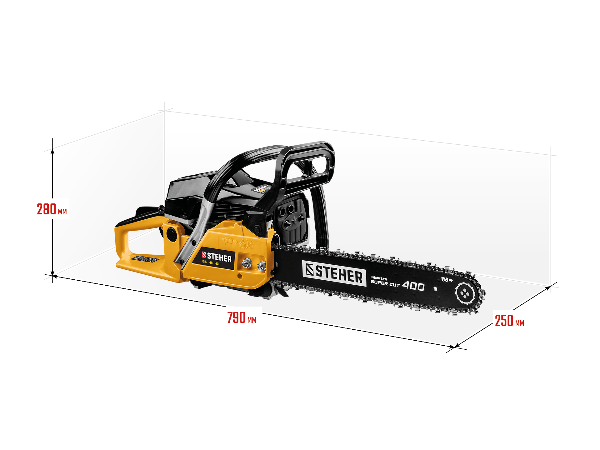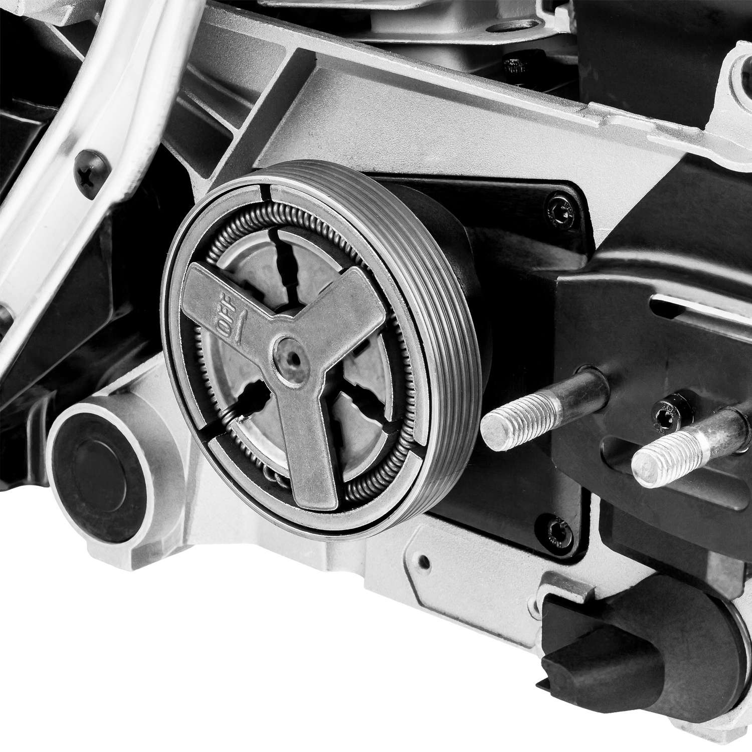 - Тормоз мгновенного действия обеспечивает высокую безопасность работ, мгновенно останавливая пильную цепь в случае опасности