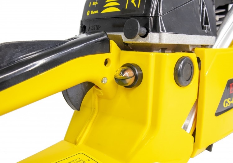 Модель оснащена бензиновым двигателем мощностью 2800 Вт рабочим объемом 52 куб.см. Емкость топливного бака в 550 мл позволяет долго работать. В качестве топлива рекомендуется использовать бензин АИ-92. Прорезиненные рукоятки обеспечивают надежный и комфортный хват. Натяжение цепи осуществляется с помощью специального винта, в комплекте имеется универсальный ключ. Чтобы цепь не перегревалась, она смазывается автоматически во время работы.