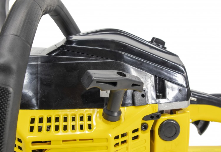 Модель оснащена бензиновым двигателем мощностью 3100 Вт рабочим объемом 58 куб.см. Емкость топливного бака в 550 мл позволяет долго работать. В качестве топлива рекомендуется использовать бензин АИ-92. Прорезиненные рукоятки обеспечивают надежный и комфортный хват. Натяжение цепи осуществляется с помощью специального винта, в комплекте имеется универсальный ключ. Чтобы цепь не перегревалась, она смазывается автоматически во время работы.