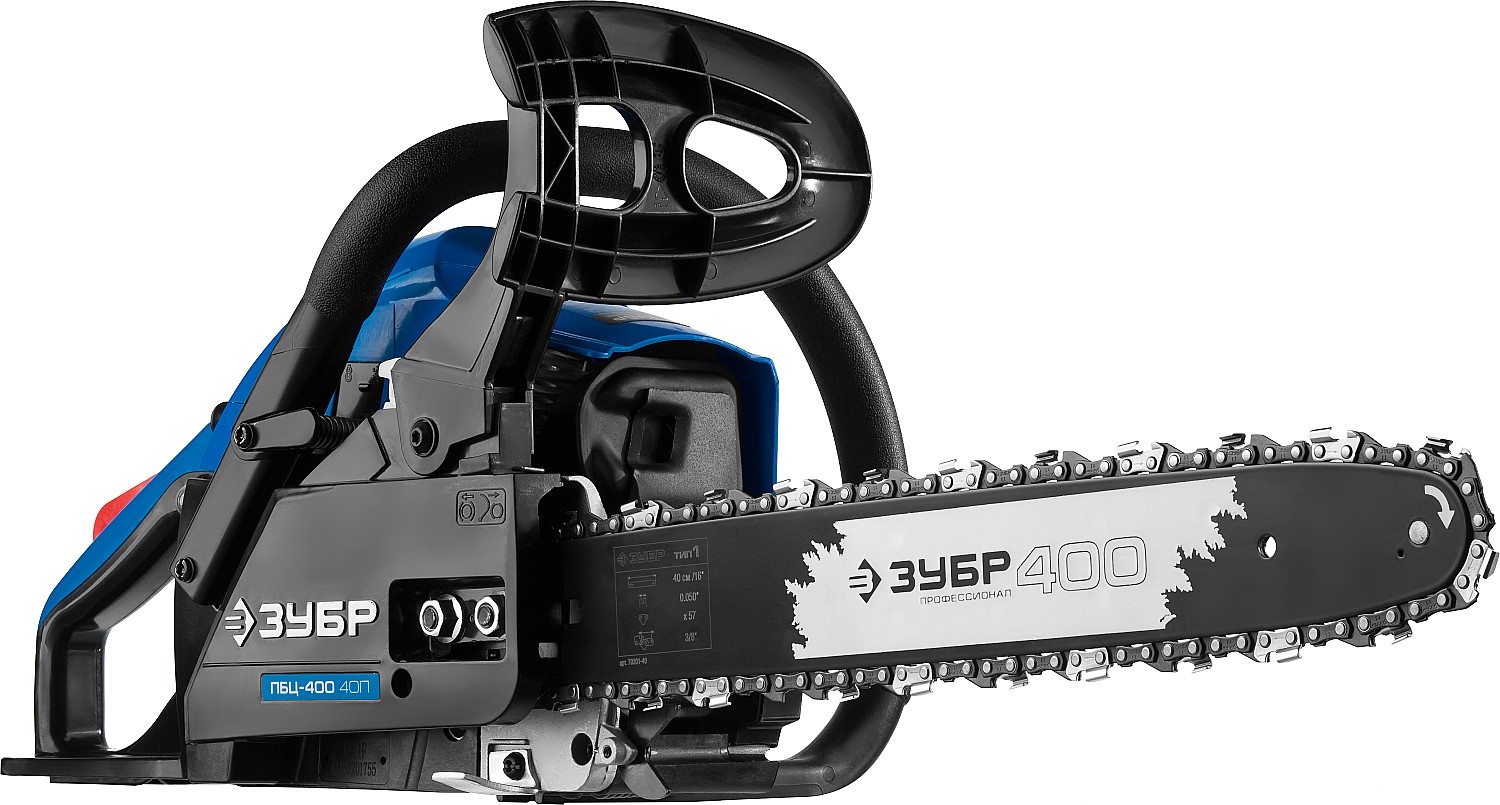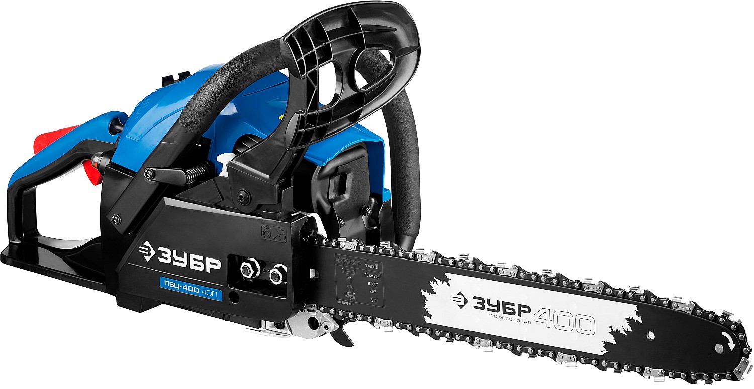 Идеальный вариант для пиления досок, бруса, стволов различных пород дерева на дачном участке. В отличие от электрической, бензиновая пила оснащена более мощным двигателем, безопасна в отношении поражения электрическим током, может работать в любую погоду и в любом месте. Функции легкого запуска, автоматической смазки цепи и эффективная антивибрационная защита делают пилу легкой в обращении и комфортной в работе. Двойной тормоз цепи, приводимый в действие при откидывании защитного щитка или при отпускании клавиши блокировки на рукоятке, а также встроенный цепеуловитель и металлический упор делают пилу безопасной в применении. Большая удельная мощность, высокое качество применяемых материалов и изготовления, обеспечивающие увеличенный ресурс, делают бензиновую пилу ЗУБР Вашим лучшим помощником