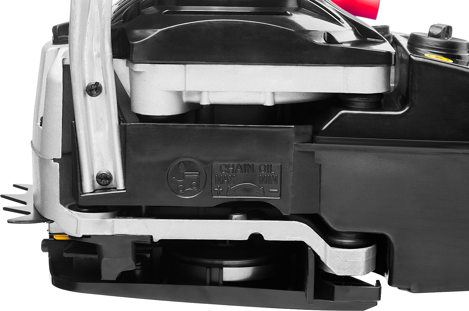 - Автоматическая система смазки цепи дозированно подает масло, в зависимости от нагрузки и отключает подачу масло на холостых оборотах