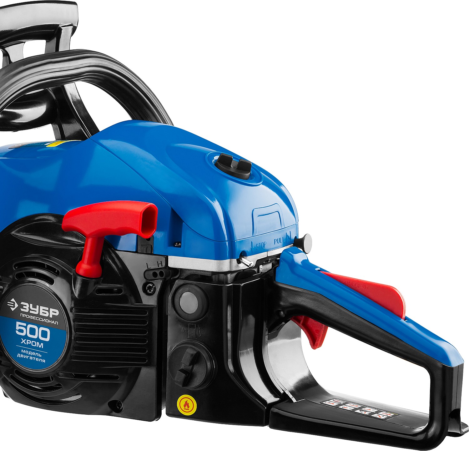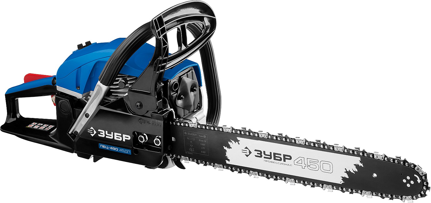 Идеальный вариант для пиления досок, бруса, стволов различных пород дерева на дачном участке. В отличие от электрической, бензиновая пила оснащена более мощным двигателем, безопасна в отношении поражения электрическим током, может работать в любую погоду и в любом месте. Функции легкого запуска, автоматической смазки цепи и эффективная антивибрационная защита делают пилу легкой в обращении и комфортной в работе. Двойной тормоз цепи, приводимый в действие при откидывании защитного щитка или при отпускании клавиши блокировки на рукоятке, а также встроенный цепеуловитель и металлический упор делают пилу безопасной в применении. Большая удельная мощность, высокое качество применяемых материалов и изготовления, обеспечивающие увеличенный ресурс, делают бензиновую пилу ЗУБР Вашим лучшим помощником