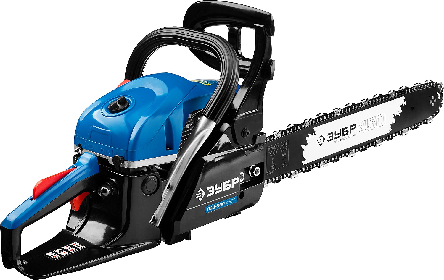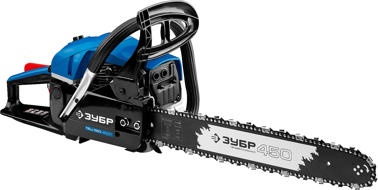 Идеальный вариант для пиления досок, бруса, стволов различных пород дерева на дачном участке. В отличие от электрической, бензиновая пила оснащена более мощным двигателем, безопасна в отношении поражения электрическим током, может работать в любую погоду и в любом месте. Функции легкого запуска, автоматической смазки цепи и эффективная антивибрационная защита делают пилу легкой в обращении и комфортной в работе. Двойной тормоз цепи, приводимый в действие при откидывании защитного щитка или при отпускании клавиши блокировки на рукоятке, а также встроенный цепеуловитель и металлический упор делают пилу безопасной в применении. Большая удельная мощность, высокое качество применяемых материалов и изготовления, обеспечивающие увеличенный ресурс, делают бензиновую пилу ЗУБР Вашим лучшим помощником