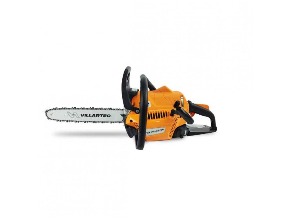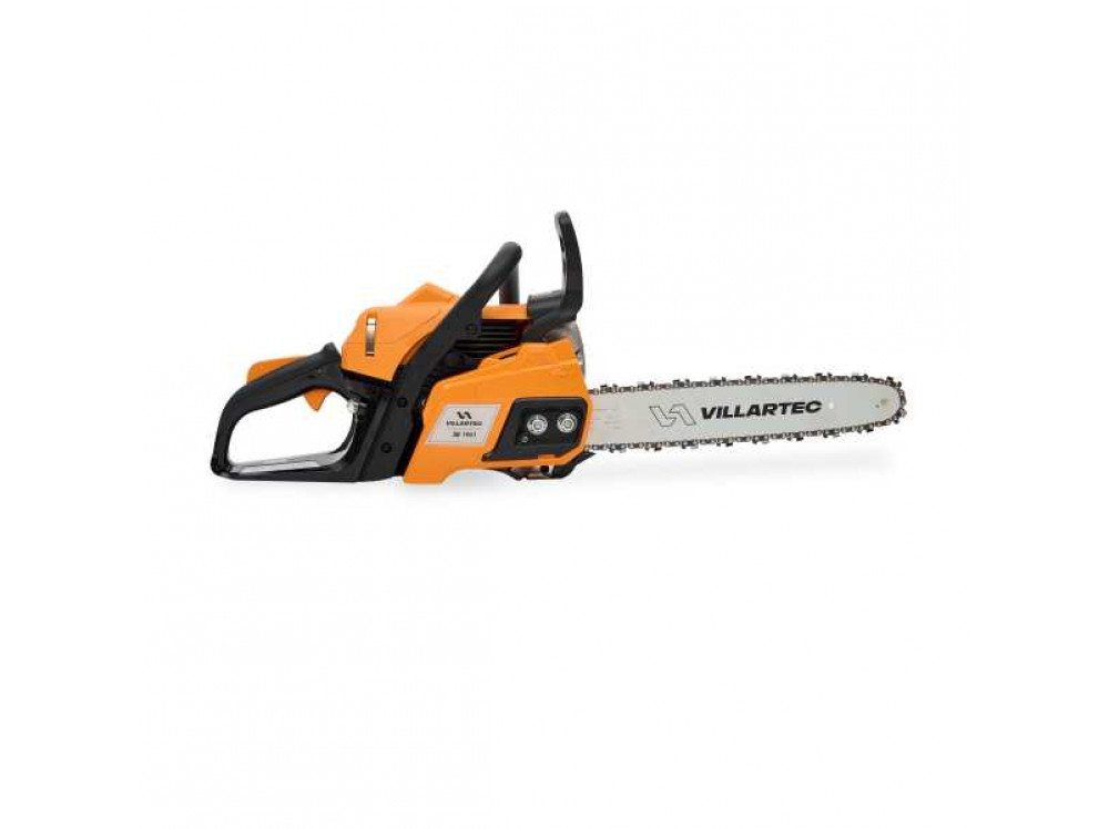 Бензиновая цепная пила VILLARTEC SB 1961 значительно облегчит и ускорит работу на садовом участке, а также при домашних работах в частном секторе. Мощность пилы составляет 2 лошадиные силы, а длина шины составляет 35 см. Инструмент способен справляться с значительными нагрузками при впечатляющих параметрах реза. Для производства данного инструмента использованы только самые лучшие и качественные материалы, начиная от пластиковых деталей корпуса и заканчивая механическими узлами, изготовленными из качественных сплавов. Поэтому инструмент является надежным, качественным, высоко ресурсным, удобным и приятным в использовании. Эффективная система отвода тепла от двигателя увеличивает продолжительность работы пилы без перегрева. Множественные тонкие рёбра охлаждения обдуваются увеличенным потоком воздуха от маховика с модернизированной крыльчаткой. Качественная пильная гарнитура обеспечивает отличный рез древесины с минимальной вибрацией и малым шумом. Режущие зубья долго сохраняют остроту и работоспособность. Антивибрационная система минимизирует вибрационные нагрузки на руки, обеспечивая возможность продолжительной работы без усталости и негативного влияния вибрации. Тормоз цепи делает работу безопасной, мгновенно останавливая вращение пильной цепи в случае необходимости. Пила работает на топливной смеси из масла для двухтактных высокооборотистых двигателей с воздушным охлаждением и бензина АИ 92 в соотношении 40:1. То есть, к одному литру бензина необходимо добавить 25 мл масла и смешать. Такое соотношение является самым оптимальным для эффективной смазки и отвода тепла во время работы двухтактного двигателя. Для удобства пользователей пила имеет поясняющие надписи и пиктограммы на корпусе, напоминая о правильном управлении, пропорциях разведения смеси и предназначении каждого бака. Яркий цвет корпуса делает инструмент заметным как летом, на фоне растительности, так и зимой в снегу. Шина длиной 35 см позволяет выполнять распилы значительных размеров. Для обслуживания пилы владельцем требуется минимум инструмента.