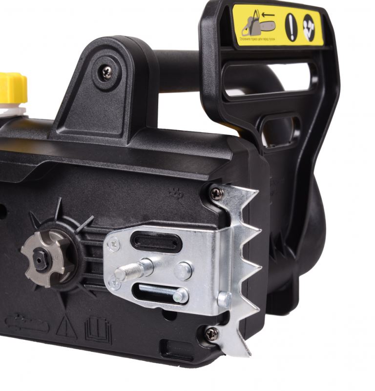 - Безопасность. Автоматический тормоз цепи в виде щитка обеспечивает безопасность работы с электропилой, в первую очередь, защиту ваших рук.