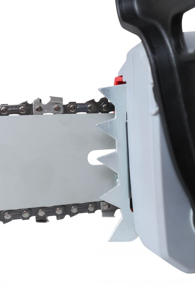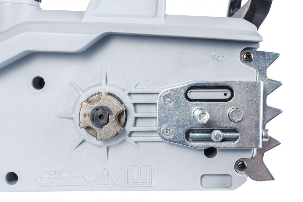 - Безопасность. Автоматический тормоз цепи в виде щитка обеспечивает безопасность работы с электропилой, в первую очередь, защиту ваших рук.