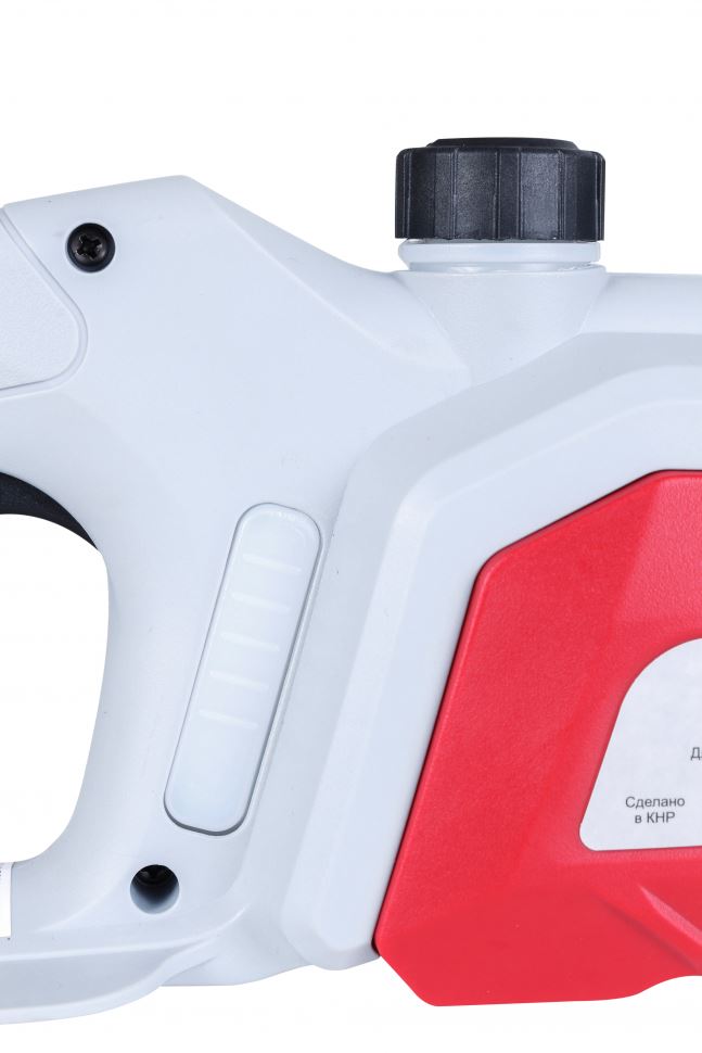 - Надежное удержание. Удобная задняя рукоятка небольшого размера с пусковым курком жестко сидит в руке, что способствует надежному удержанию электропилы.