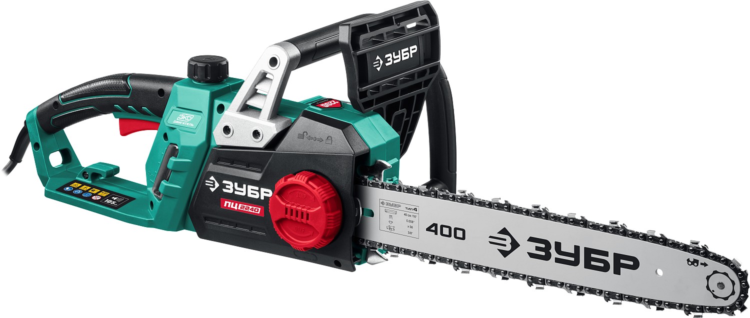 - Шина длиной 400 мм позволяет распиливать заготовки большого диаметра