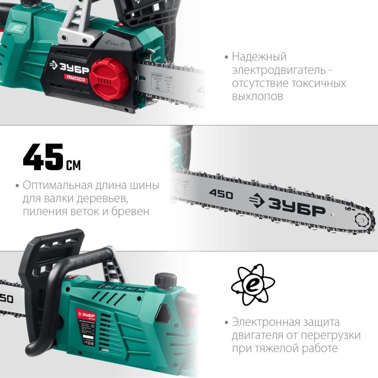 Универсальный и надежный помощник для валки деревьев, а так же пиления веток, обрезки сучьев, пиления деревянных бревен и проч. В отличие от бензиновой, электрическая пила оснащена надежным двигателем, не требует постоянных расходных материалов (топлива), не имеет проблем с запуском при любой температуре, требует минимальных операций при подготовке к работе.