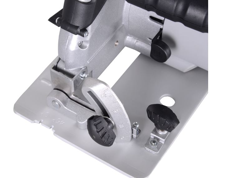 Опорная плита циркулярной пилы оснащена возможностью регулировки угла наклона, позволяя работать под разными углами, а максимальное значение глубины пропила составляет 85 мм при угле 90°, и 60 мм при 45°. Такой показатель позволяет комфортно обрабатывать крупные заготовки. Наличие отдельного регулятора глубины пропила позволяет точнее управлять ходом инструмента, адаптируя его под потребности задачи. Присутствует крепеж для параллельного упора, повышающий точность резов.