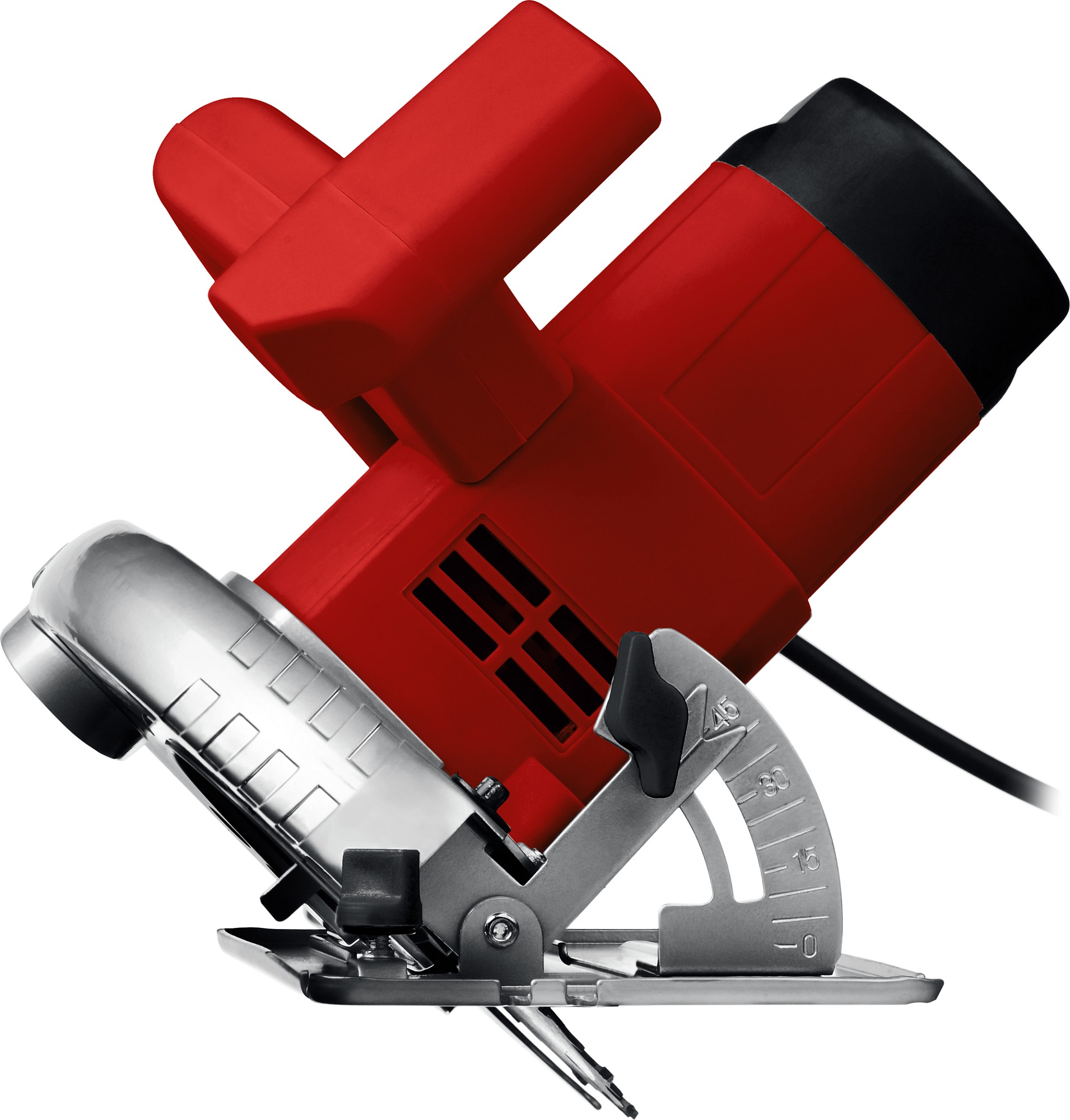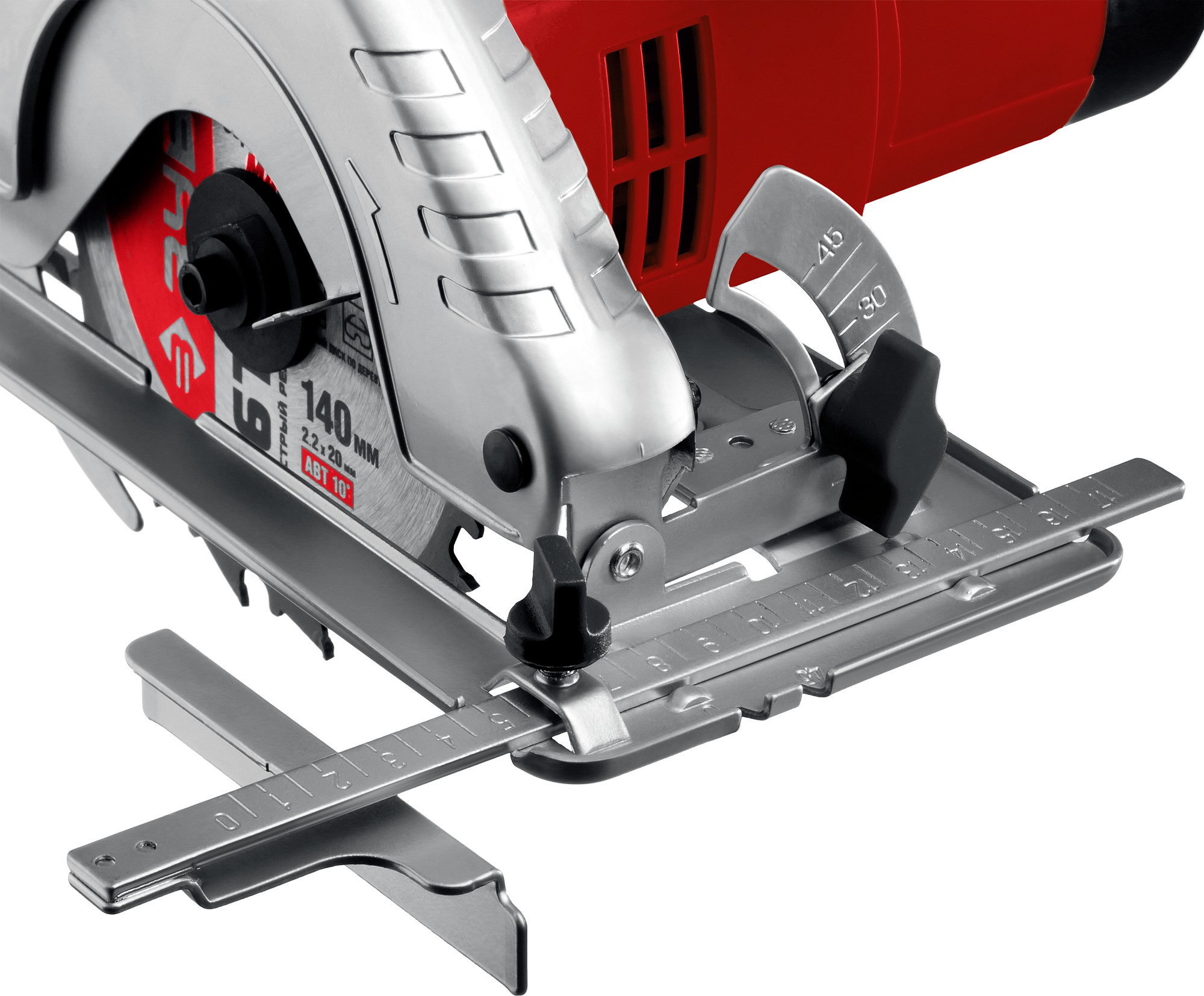 - Бесступенчатая регулировка глубины и угла пиления для точных работ
