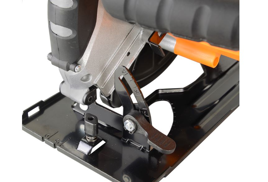 Для удобства и повышения точности распиловки предусмотрен параллельный упор. Прочная стальная подошва пилы обеспечивает стабильность и долговечность, а верхний кожух с отводом стружки поддерживает чистоту рабочего пространства и облегчает контроль над процессом резки. Плавающий нижний кожух с возвратной пружиной служит дополнительной мерой безопасности, автоматически закрываясь после завершения реза и защищая оператора от контакта с вращающимся диском.