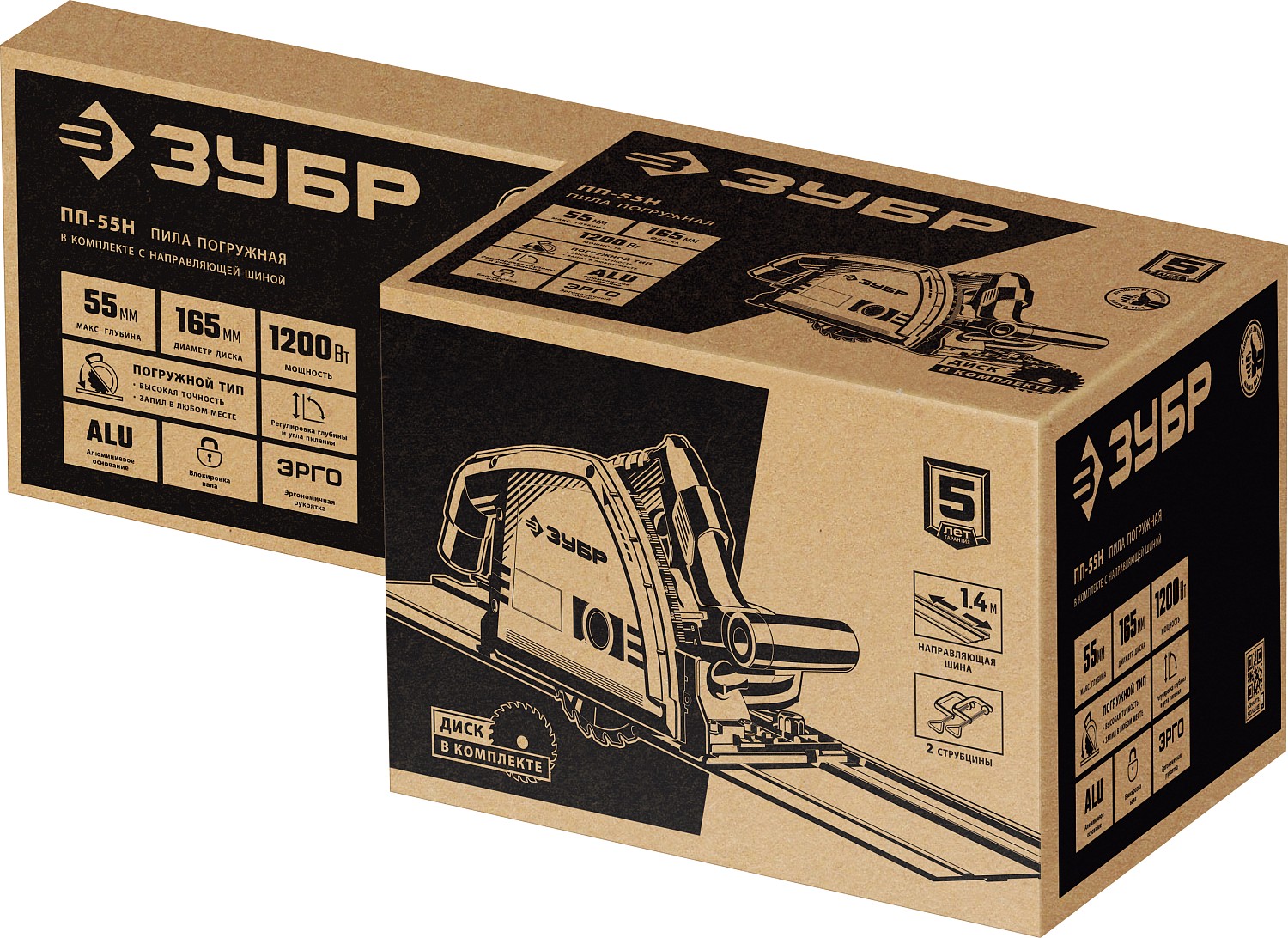 Пила погружная с шиной, 90°-55 мм, диск 165 мм, 1200 Вт, ЗУБР