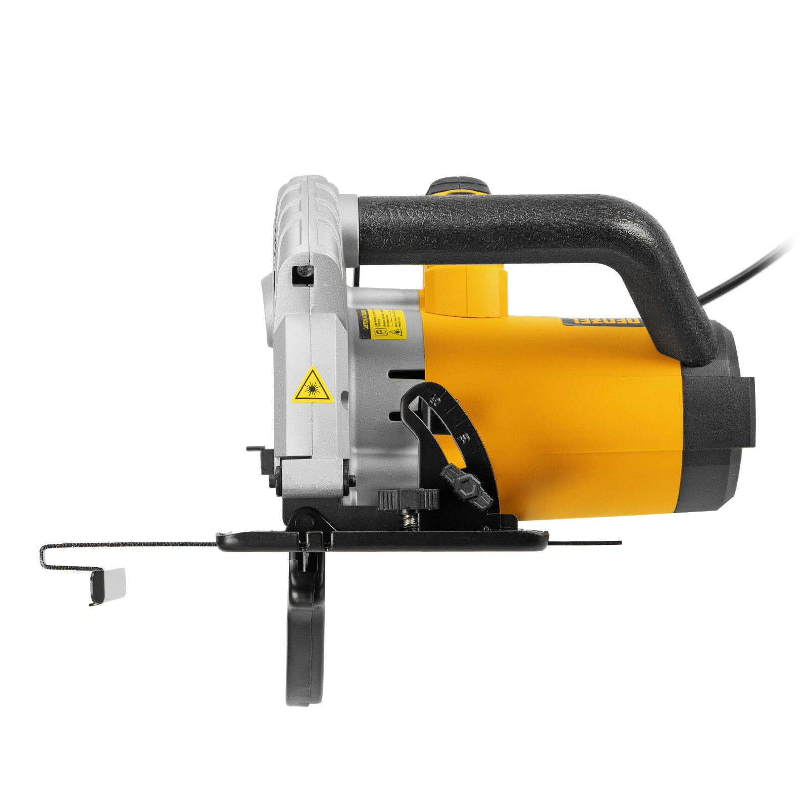 - Высокая точность — лазерный указатель, показывающий линию предстоящего среза, и стальная параллельная направляющая помогают осуществлять ровные прямые пропилы без дополнительной разметки.