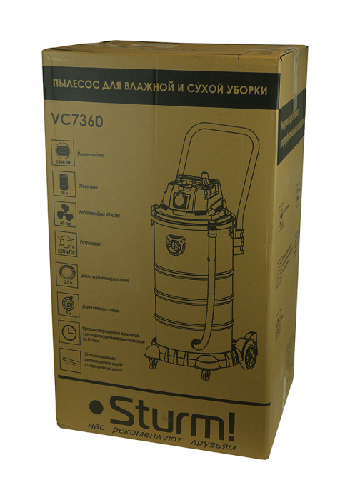 Строительный пылесос Sturm VC7360 — предназначенный для уборки помещений, а также для принудительного удаления продуктов пиления, строгания, фрезерования и т.п. из рабочей зоны. Он важен для поддержания чистоты в гараже, мастерской, удаления мусора во время ремонта в квартире или на даче. Данная модель отличается встроенной розеткой с функцией синхронизации, что позволяет подключать электроинструменты мощностью до 2000 Вт и согласовывать с ними работу пылесоса.