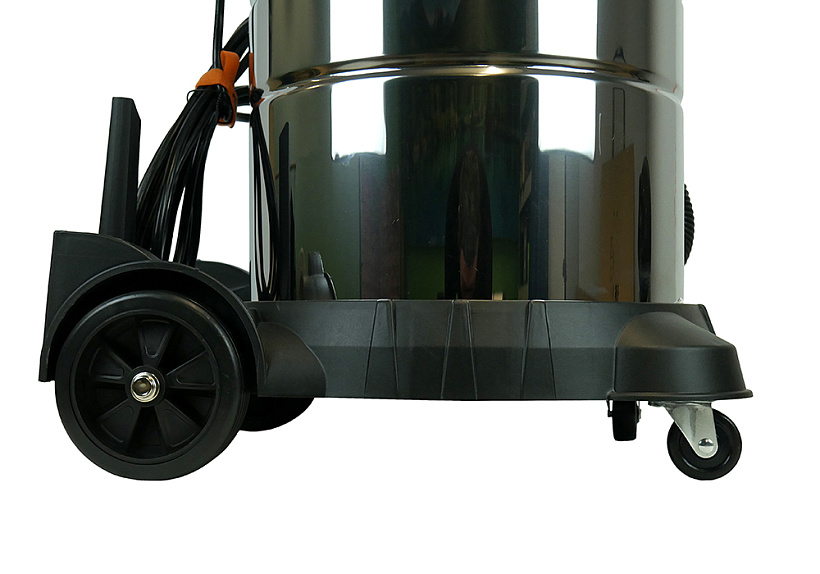 Бак из нержавеющей стали объемом 60 л устойчив к коррозии и предельно долговечен. Продолжительности эксплуатации также способствует фильтр тонкой очистки HEPA который, как защищает двигатель от пыли, так и содействует чистоте уборки. В свою очередь фильтр возможно очищать автоматически, что особенно полезно при работе с мелкой фракцией мусора. Пригодность к влажной уборки и сбору жидкости делают модель универсальной в широком спектре применения. Для хорошего охвата очищаемого пространства есть сетевой кабель длинной 5 м, а в интересах легкого перемещения пылесоса предусмотрены надежные и удобные колесика.