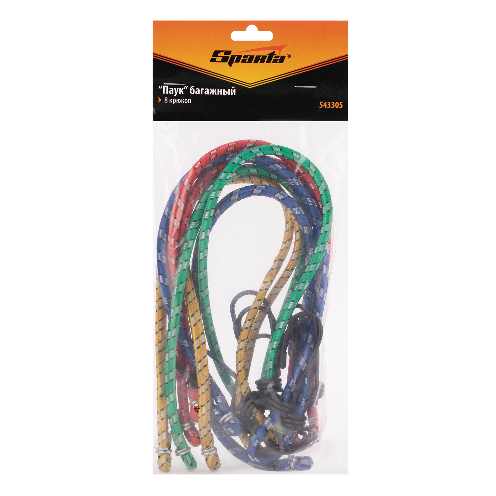 Резиновый багажный паук Sparta 543305 с 8 крюками используется для фиксации предметов на решетчатых конструкциях. Предотвращает смещение груза при перевозке в открытом багажнике на крыше легковой автомашины. Имеет оригинальную конфигурацию — 4 эластичных резиновых жгута длиной 45 см с крюками на концах перехвачены посередине кольцом. Благодаря такому строению паук надежно удерживает предметы сложной формы. Крепежное приспособление будет полезно в поездках на автомобиле.