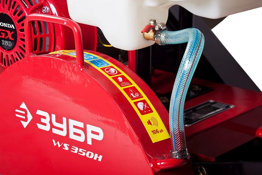 - Система охлаждения места реза с вместительным баком обеспечивает подачу воды к режущему диску и ограничивает пылеобразование в процессе работы