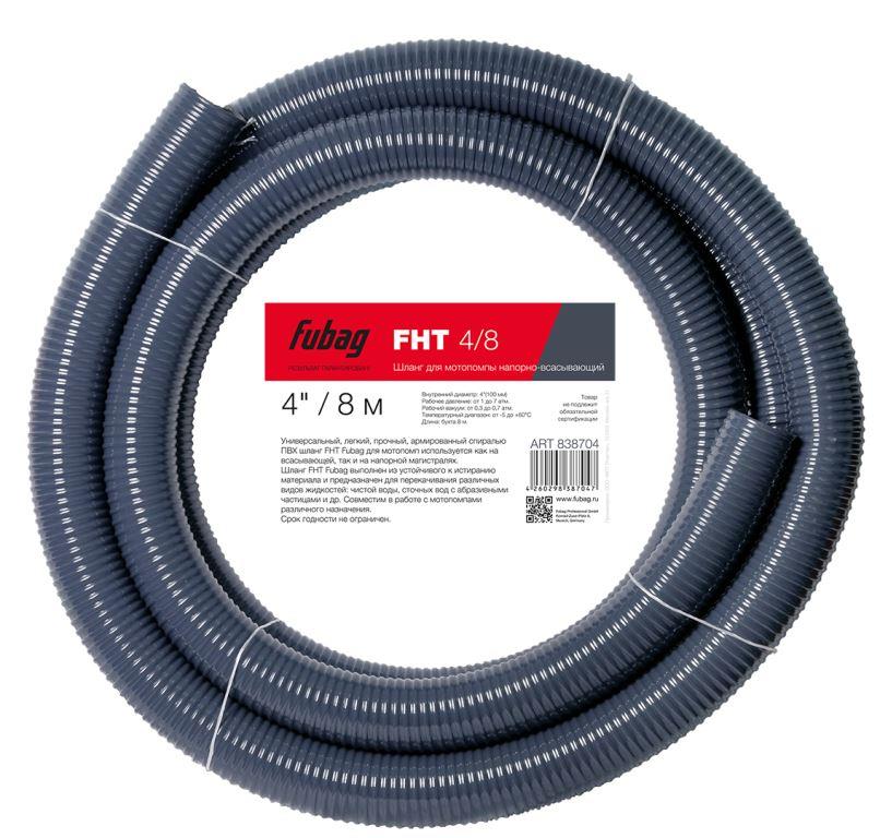 Универсальный напорно-всасывающий армированный спиралью ПВХ, внутр.диаметр 100 мм (4") длина 8 м.