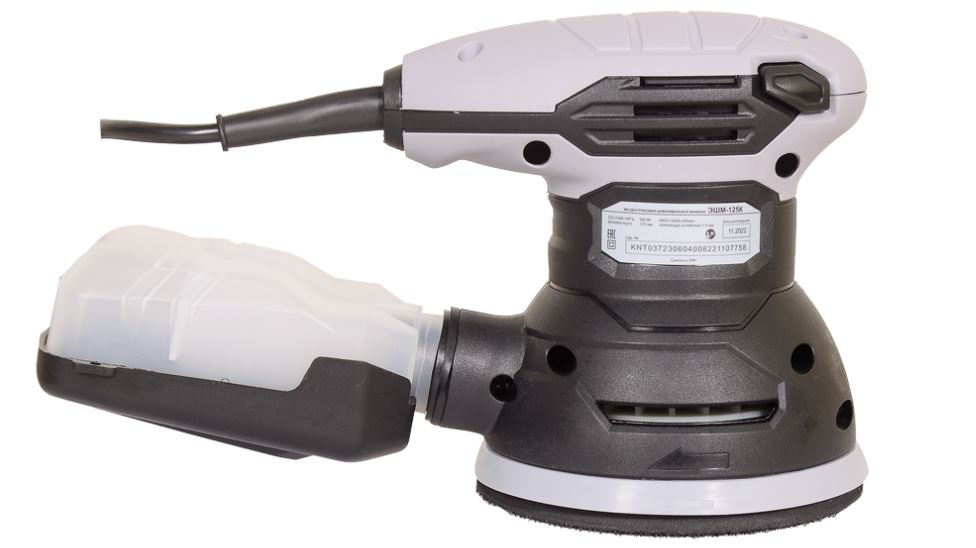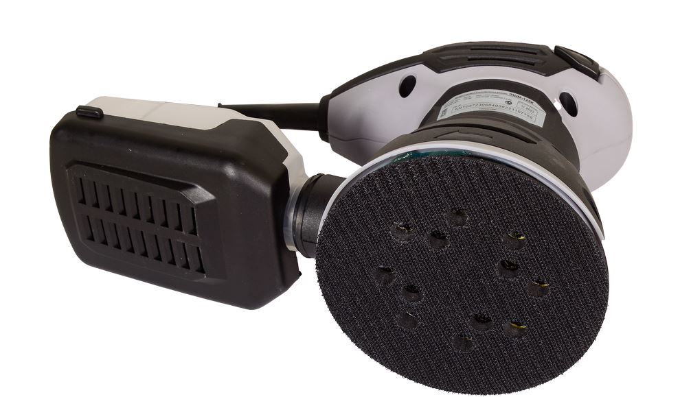 Диаметр шлифовальной подошвы составляет 125 мм. Круги крепятся на подошву простым способом — на «липучке», что облегчает и ускоряет смену наждачных полотен и абразивных дисков. Отверстия в подошве предназначены для увеличения вентиляции и эффективного удаления отработанной пыли. Пылесборник входит в комплект поставки, облегчая удаление мелкой пыли и снижая загрязнения рабочего пространства.