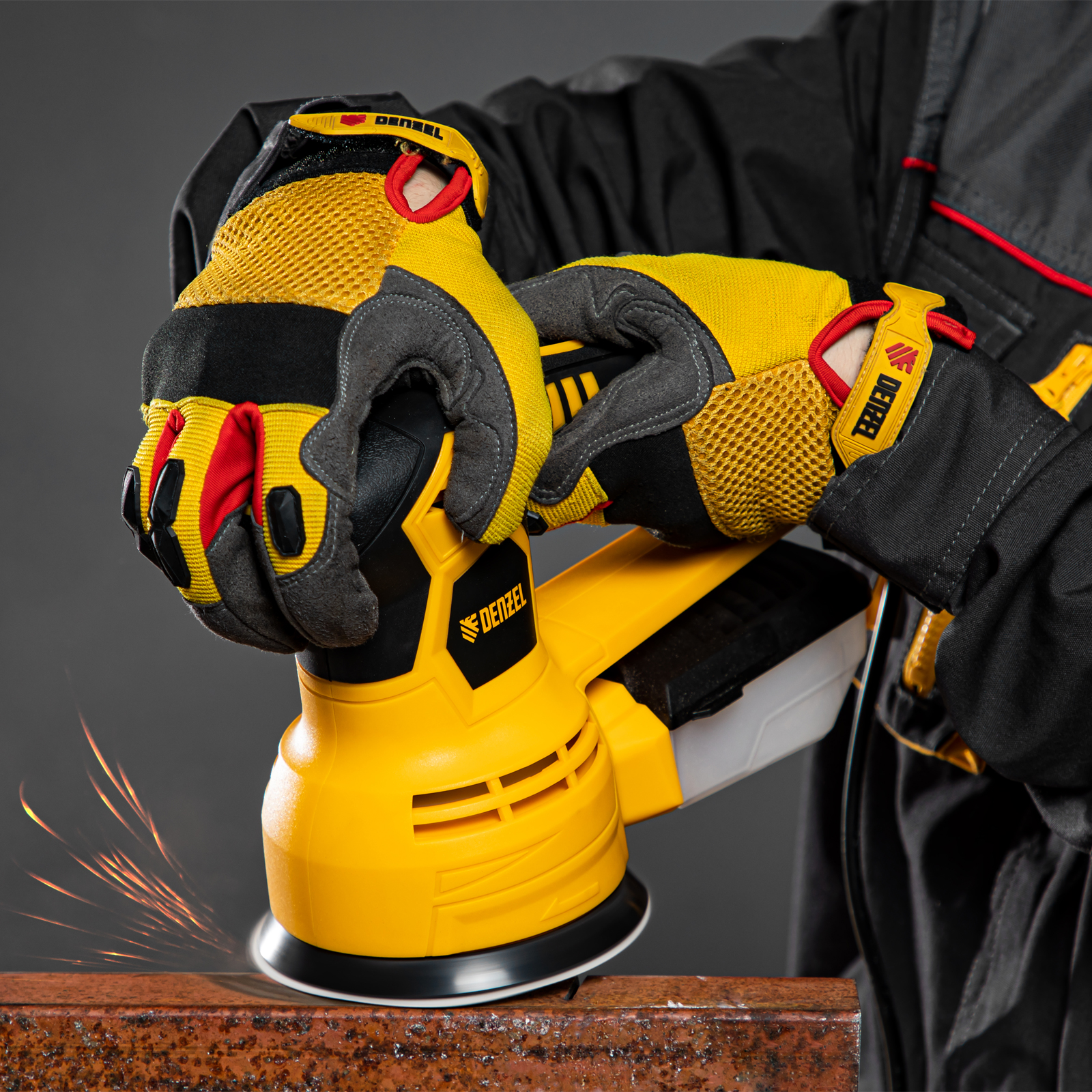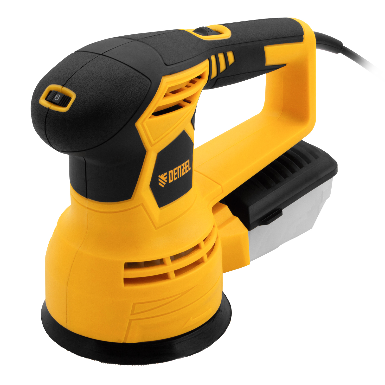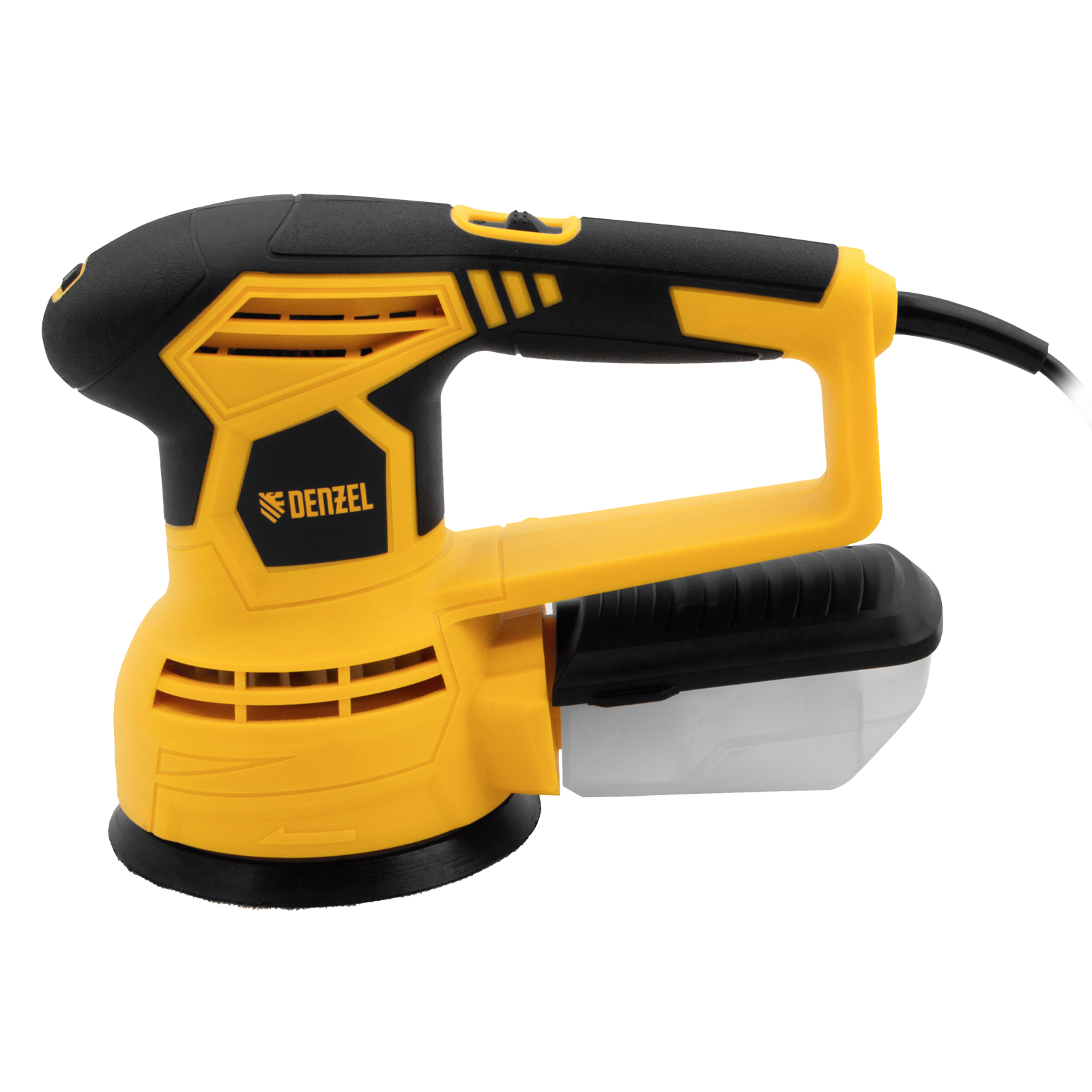 - Универсальный пылесборник — контейнер подходит для всех моделей шлифовальных машин Denzel.