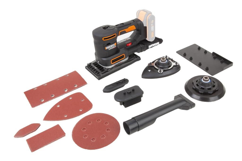 WORX WX820.9 – Аккумуляторная многофункциональная шлифовальная машина в зависимости от выбранной насадки используется как дельта, вибрационная или эксцентриковая шлифмашина. 5 подошв расширяют сферу применения инструмента и позволяют уверенно работать как с прямыми, так и с изогнутыми поверхностями. Замена оснований не требует дополнительного инструмента. Система Hyperlock® может обеспечить усилие зажима до 1 тонны для предотвращения проскальзывания шлифовальной пластины. Использование микрофильтра DustStop ™ позволяет производить работу в более чистой рабочей среде (легкое удаление пыли благодаря нажатию кнопки). Мощности двигателя достаточно для развития высокой скорости работы: шлифмашина совершает от 4000 до 10000 кол/мин. Регулировка скорости. Эргономичная конструкция для работы как двумя, так и одной рукой. Технические характеристикиТип двигателя: Щеточный. Напряжение аккумулятора: 20 В. Тип аккумулятора: Li-lon. Количество аккумуляторов в комплекте: Без АКБ и ЗУ. Кол-во оборотов без нагрузки: 4000-10000 кол/мин. Вес без АКБ: 1,5 кг. Комплектация: УШМ WORX WX820; 5 различных съемных подошв. 15 шлифовальных листов; Картонная коробка. Внимание: этот комплект поставляется без аккумулятора (АКБ) и зарядного устройства (ЗУ). |