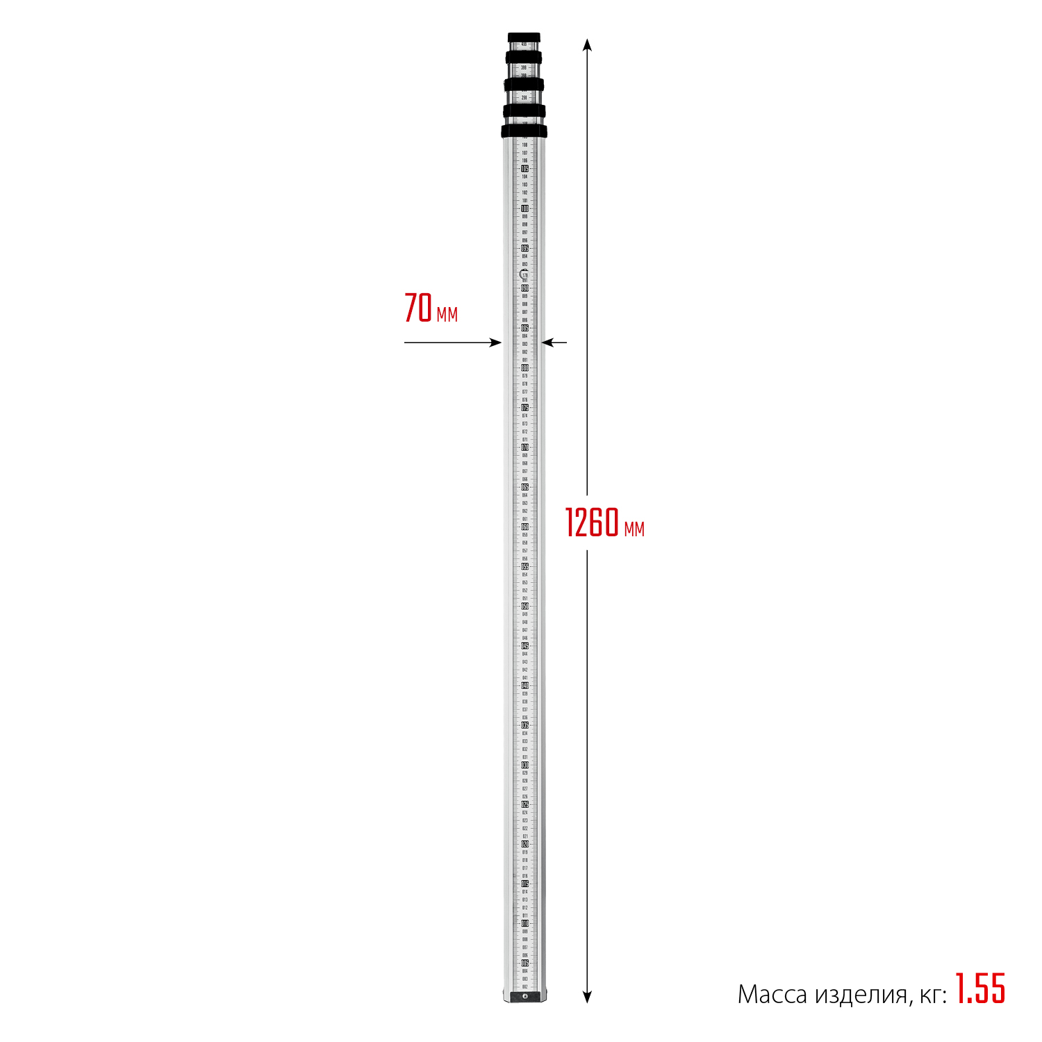 Профессиональный инструмент для работы с лазерным, оптическим инструментом для определения перепадов высоты. Имеет миллиметровую шкалу и E-градуировку .