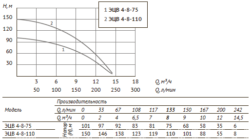 Серия ЭЦВ — погружные центробежные многоступенчатые насосы. Корпус насоса выполнен из нержавеющей стали. Напорный патрубок, адаптер, переходник, фланец и крышка изготовлены из чугуна. Электродвигатель — трехфазный, маслонаполненный. Герметизация электрического кабеля во фланце двигателя (переходнике) выполнена с помощью кабельного ввода. Рабочие колеса «плавающие», выполнены из высокопрочного, износоустойчивого полимера. Такая конструкция и используемый материал обеспечивают продолжительный срок службы проточной части и уменьшают вероятность заклинивания при перекачивании воды с механическими примесями. В верхней части насоса (проточной части), в напорном патрубке имеется выходное присоединительное отверстие с внутренней резьбой для соединения с напорным трубопроводом, проушины для крепления страховочного троса, а также встроенный обратный клапан. Всасывающее отверстие располагается в средней части насоса и защищено фильтрующей решеткой.