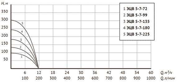 Серия ЭЦВ — погружные центробежные многоступенчатые насосы. Корпус насоса выполнен из нержавеющей стали. Напорный патрубок, адаптер, переходник, фланец и крышка изготовлены из чугуна. Электродвигатель — трехфазный, маслонаполненный. Герметизация электрического кабеля во фланце двигателя (переходнике) выполнена с помощью кабельного ввода. Рабочие колеса «плавающие», выполнены из высокопрочного, износоустойчивого полимера. Такая конструкция и используемый материал обеспечивают продолжительный срок службы проточной части и уменьшают вероятность заклинивания при перекачивании воды с механическими примесями. В верхней части насоса (проточной части), в напорном патрубке имеется выходное присоединительное отверстие с внутренней резьбой для соединения с напорным трубопроводом, проушины для крепления страховочного троса, а также встроенный обратный клапан. Всасывающее отверстие располагается в средней части насоса и защищено фильтрующей решеткой.