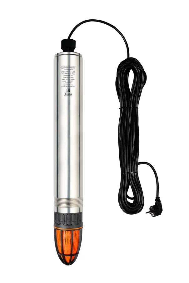 Насос «ВОДОМЕТ 3Д» 55/50 предназначен для подачи чистой воды из скважин, колодцев и других источников. Обладает максимальным расходом 55 литров в минуту и максимальным напором 50 метров. Подходит для комплектации систем автоматизированного водоснабжения дома, полива и орошения. Способен перекачивать воду с содержанием песка во взвешенном состоянии до 2 килограмм на кубический метр воды. Электродвигатель насоса надежно защищен от перегрева потоком омывающей его воды, что позволяет насосу работать не полностью погруженным в воду.