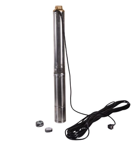 Диаметр самого насоса составляет всего 3,5 дюйма, что позволяет устанавливать его в узких скважинах. Длина электрического кабеля равна 20 м, что дает возможность подключения насоса непосредственно к источнику питания без использования удлинителей.