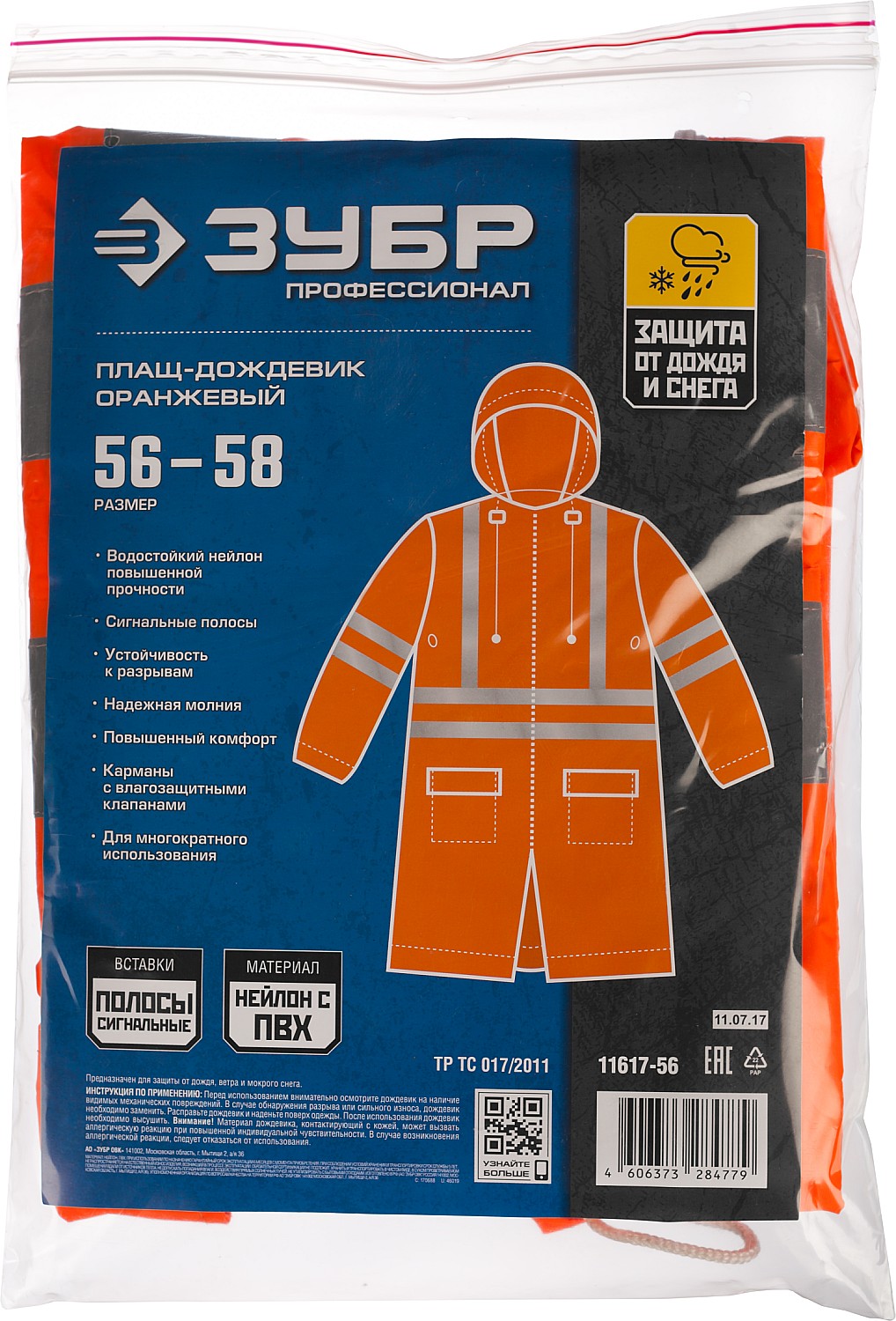 Плащ-дождевик ЗУБР отличается высоким качеством изготовления и повышенной надежностью. Превосходно защищает от сильного дождя, устойчив к загрязнениям и разрывам.
