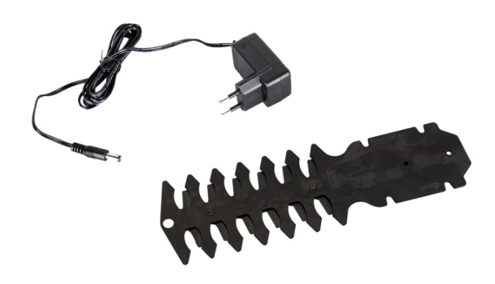 Комплект поставки включает два специализированных режущих элемента: один предназначен для работы с кустарниками, другой - для стрижки газона. Особенность конструкции ножей заключается в наличии двух встречно движущихся режущих кромок. Кусторезная насадка оснащена двусторонним механизмом с маятниковым движением, способным справляться с ветками диаметром до 8 мм. Травяная насадка оптимизирована для прямых режущих движений по газону. Смена лезвий осуществляется быстро и просто, без дополнительного инструмента.