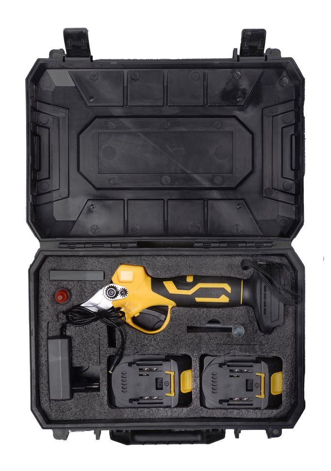 Аккумуляторный секатор, предназначен для обрезки небольших сучьев и ветвей диаметром до 30мм (мягкая древесина) и до 25мм (твердая древесина)