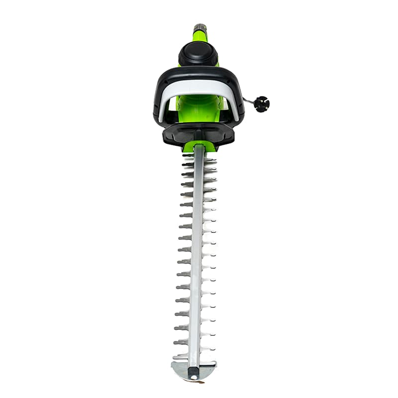 Топовая модель электрического кустореза Greenworks из линейки устройств 230V с мощным двигателем 700 Ватт отлично подойдет для ухода за декоративным кустарником, садовыми деревьями или живой изгородью. Лезвие с алмазной заточкой имеет внушительную длину в 68 см, а шаг среза лезвия 18 мм. Эргономичная прорезиненная ручка обладает функцией поворота на 180°, что в сочетании с небольшим весом в 4 кг дает подрезать живую изгородь со всех сторон и делает уход за садом простой и легкой задачей.
