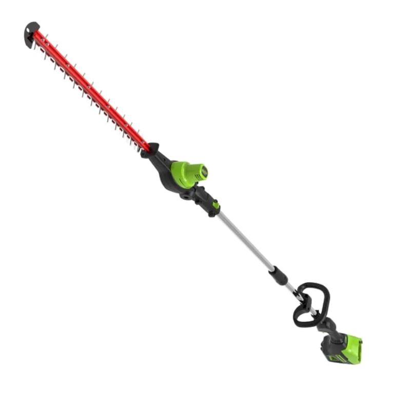 Кусторез штанговый Greenworks GD60PHT61 (арт. 2301107) — устройство из серии 60V для подравнивания деревьев и живой изгороди.