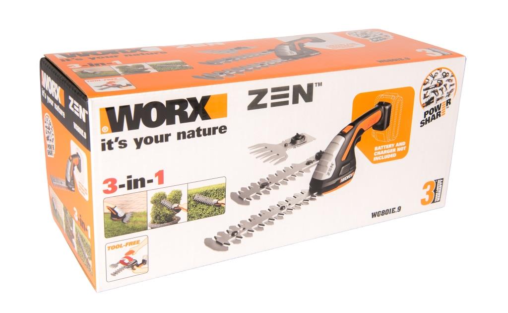 Комплектация: Ножницы для стрижки травы и кустарников аккумуляторные WORX WG801E.9; 10 см лезвие для газона; 12 см лезвие для кустарников; 20 см лезвие для кустарников; Коробка. |