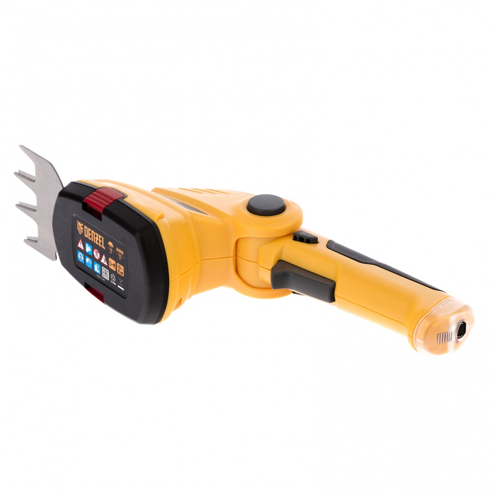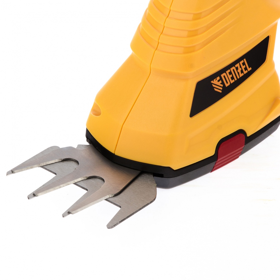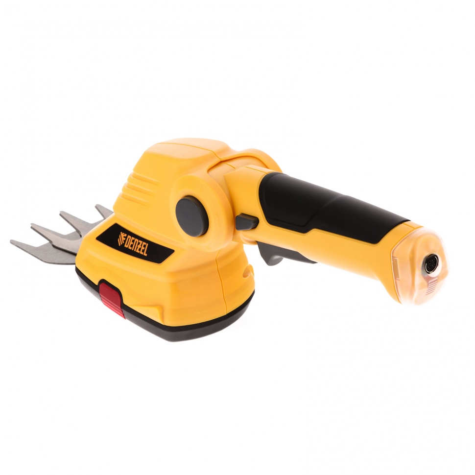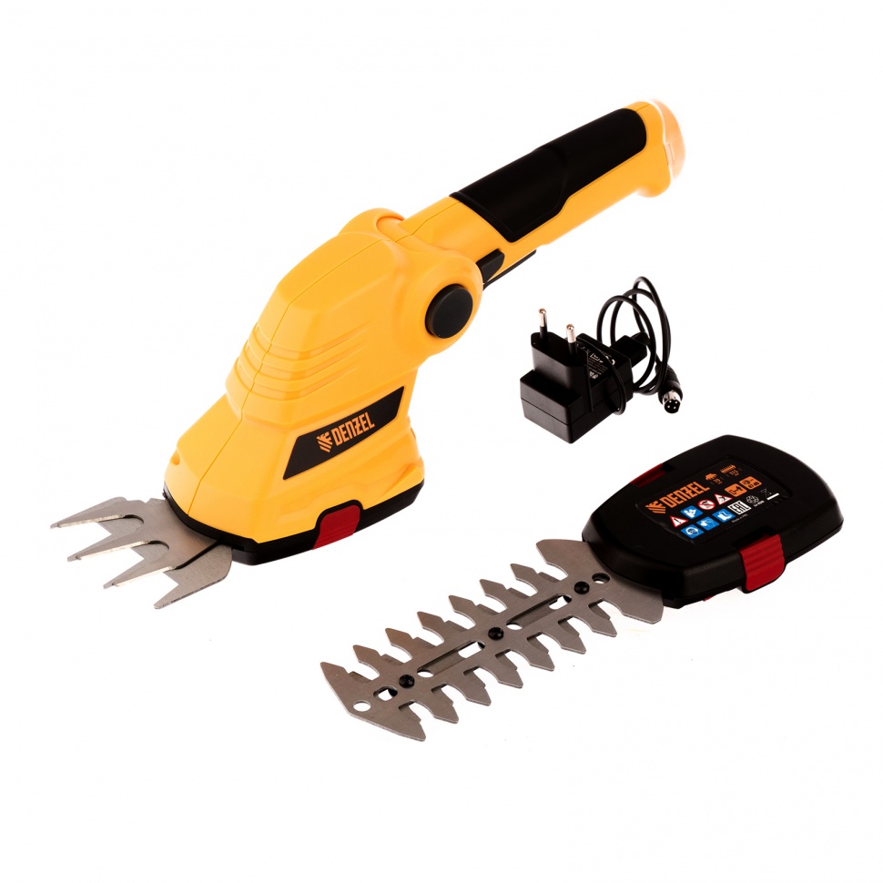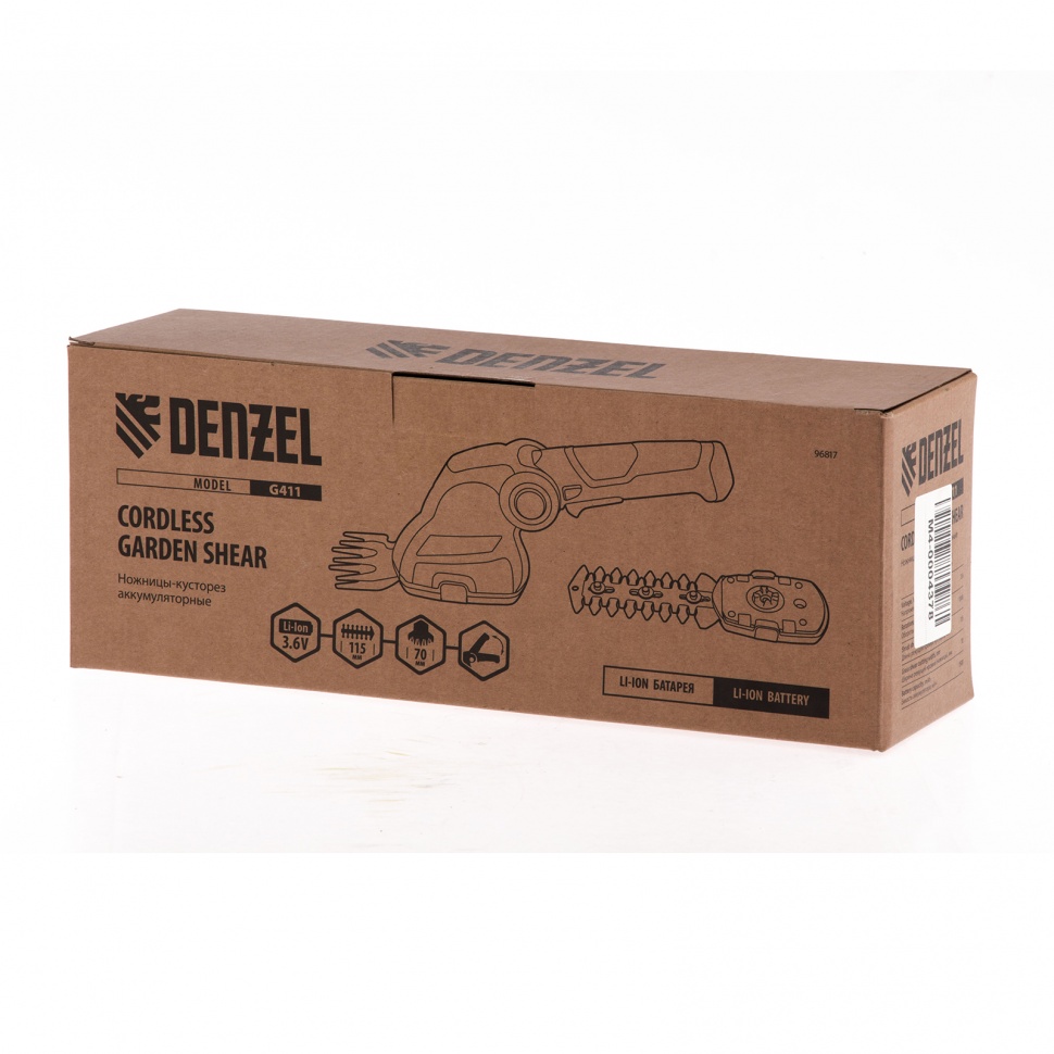 Аккумуляторные ножницы-кусторез Denzel G411 968177 с Li-Ion батареей напряжением 3,6 В и емкостью 1,5 Ач предназначены для поддержания декоративной растительности на дачном участке в аккуратном виде. В комплект входят две оснастки: для подрезания газонной травы и для обрезки кустов и тонких веток деревьев. Благодаря простому управлению и малому весу 0,6 кг с ножницами-кусторезами легко справятся даже пожилые люди.