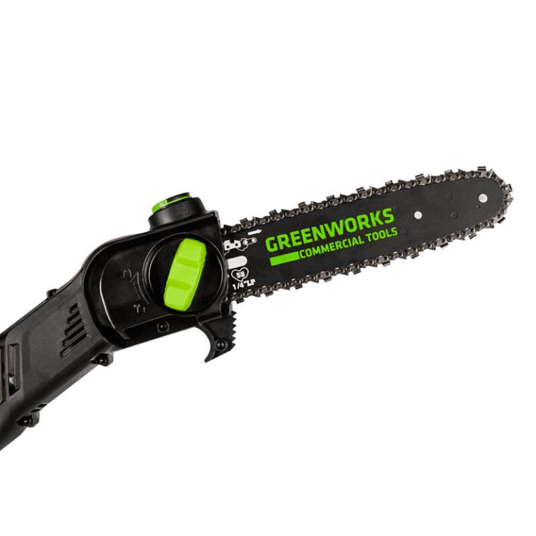 Высоторез-сучкорез аккумуляторный 60V GREENWORKS GD60PS с легкостью справится с обрезкой ветвей и сучьев на высоте до 4-х метров.