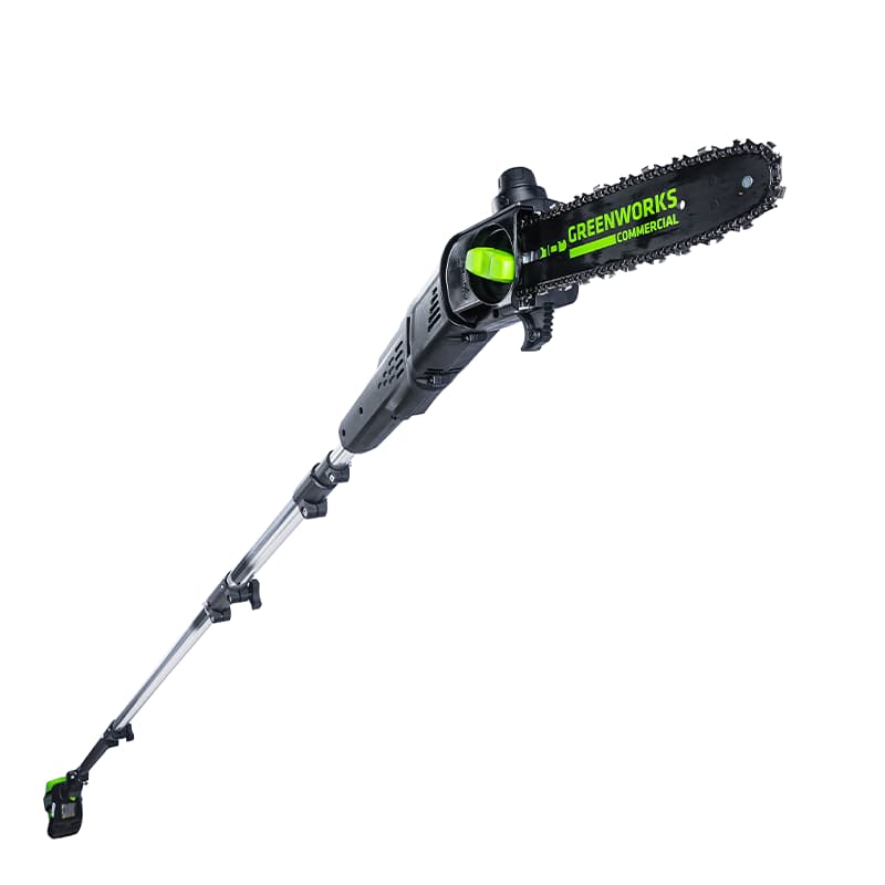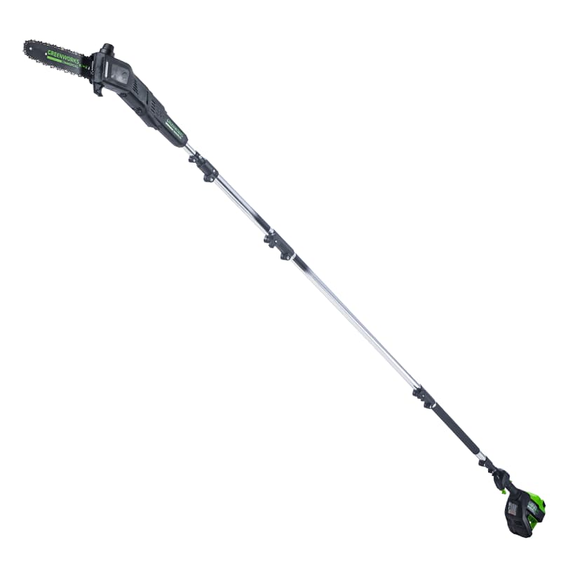 Основной особенностью высотореза Greenworks GD82PS25 82V является 4-х секционная металлическая штанга, благодаря которой максимальная длина устройства составляет 390 см. Инструмент оснащен цепной пилой с шиной 25 см и современным бесщеточным двигателем DigiPro с высоким крутящим моментом. Скорость цепи при работе достигает 11,8 м/с.