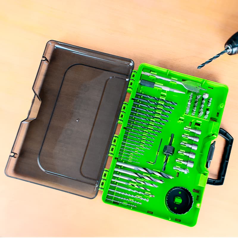 Набор сверл, бит и коронок в кейсе Greenworks арт. 2944507, 60 предметов Набор содержит самую востребованную оснастку для выполения широкого спектра работ, которые упакованы в прочный пластиковый кейс для удобной переноски и хранения Идеально подходит для работы в мастерской со всеми представленными на рынке безударными и ударными дрелями-шуруповертами и ударными винтовертами Состав набора: - свёрла по металлу HSS Black Oxide,DIN 338,135°, 19 шт: Ø1,5x2/2/2,5x2/3/3,2x3/3,5/4x2/4,2/ 4,5x2/5/5,5/6/6,5 мм; - свёрла по дереву спиральные CV, закаленные, с центрирующим наконечником, 4 шт: Ø 4/6/8/9 мм; - перьевое сверло по дереву 1/4, с центрирующим наконечником, 1 шт: Ø 25 мм; - ударные свёрла по бетону/камню/кирпичу,с твердосплавной напайкой, с качественным отведением шлама, 4 шт: Ø 4/4,5/6/8 мм; - шестигранный ключ, 1 шт; - коронка по дереву, из стали HCS, 1 шт: Ø 54 мм; - адаптер с направляющим сверлом для коронок, 1 шт; - зенкер, твердосплавный, 1 шт; - керн, рифленый, с рукояткой, закаленный наконечник ,1 шт; - торцевые головки с шестигранным хвостовиком 1/4, 5 шт: 6/7/8/9/10 мм; - биты 25 мм, из хромованадиевой стали S2, 20 шт: PH2x2/PH3x2/PZ1/PZ2x4/PZ3/ T15x2/T20x2/T25x2/T30x2 - магнитный держатель бит, 1шт - кейс для хранения и перевозки, 1 шт. |