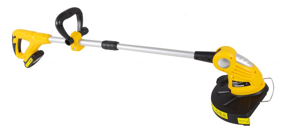 Триммер в сборе - 1 шт; Аккумулятор – 1 шт; Зарядное устройство – 1шт; Катушка с леской -1шт; Защитный кожух – 1 шт; Ремень наплечный - 1 шт; Крепежный комплект - 1 шт; Руководство - 1 экз |