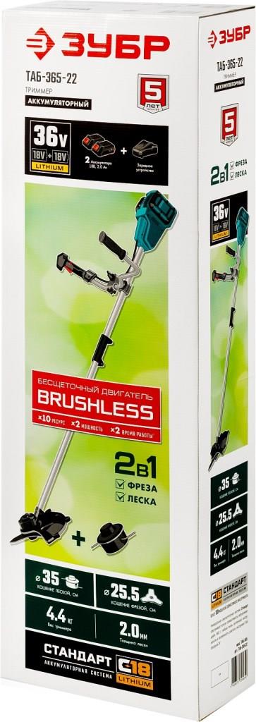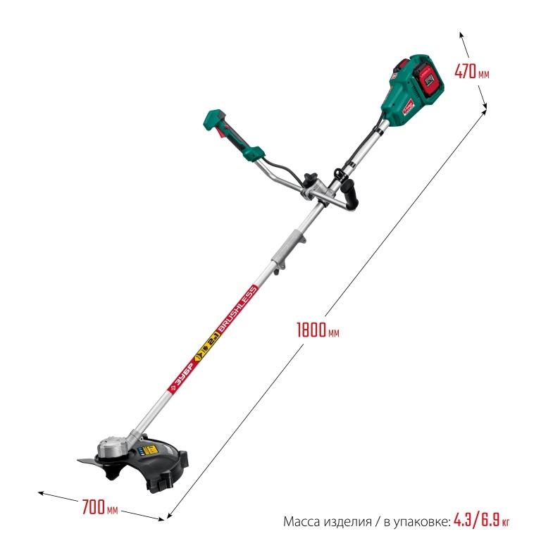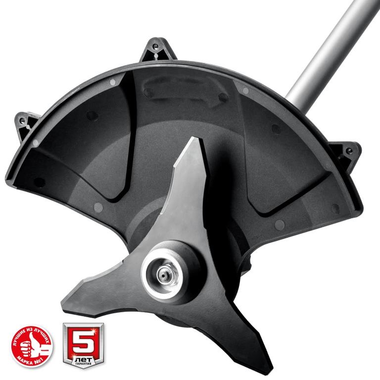 Универсальный инструмент на участке, способный заменить газонокосилку и триммер. Оснащается катушкой с леской (для мягкой растительности) и ножом (для грубой растительности). Большая мощность двигателя BRUSHLESS и две батареи позволяют косить довольно густую и грубую растительность длительное время