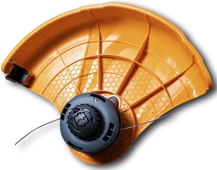 Особое внимание следует обратить на надежную и высокоресурсную косильную головку из качественного износостойкого пластика. Механизм подачи лески великолепно работает, и головка будет служить долгое время.