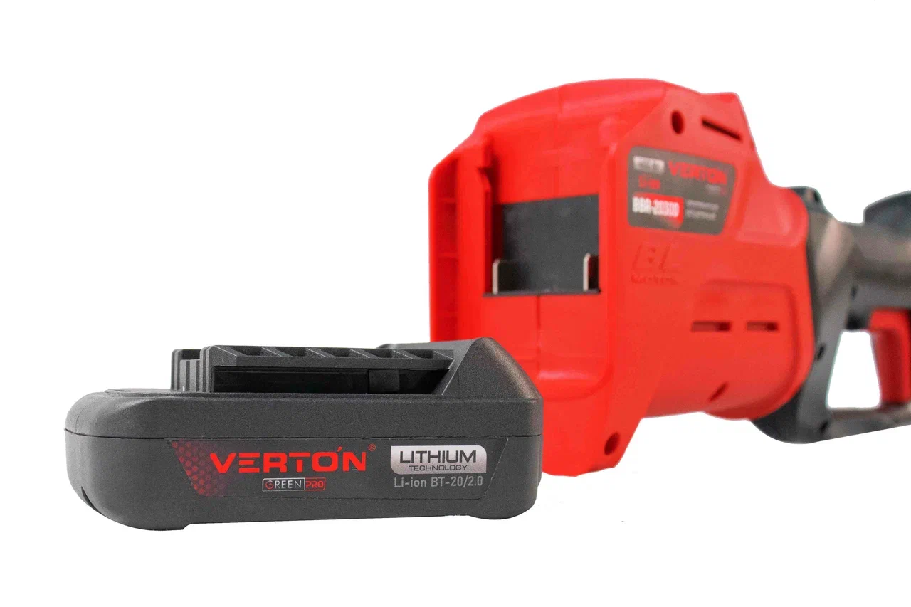 •    Аккумулятор и зарядное устройство совместимы с другими садовыми инструментами VERTON с напряжением 20В
