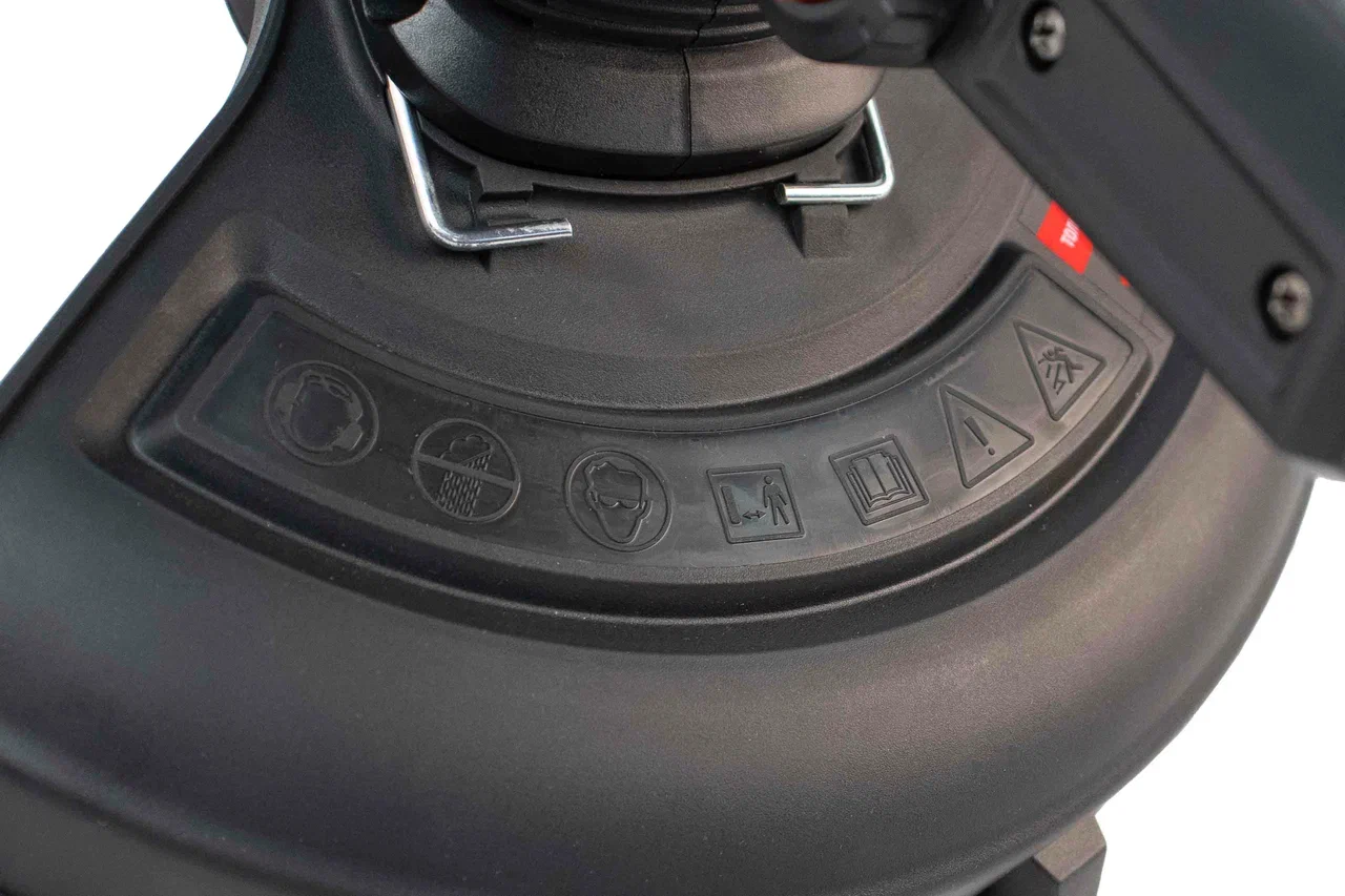 • Триммерная головка регулируется под разным углом, для удобства работы на сложном рельефе