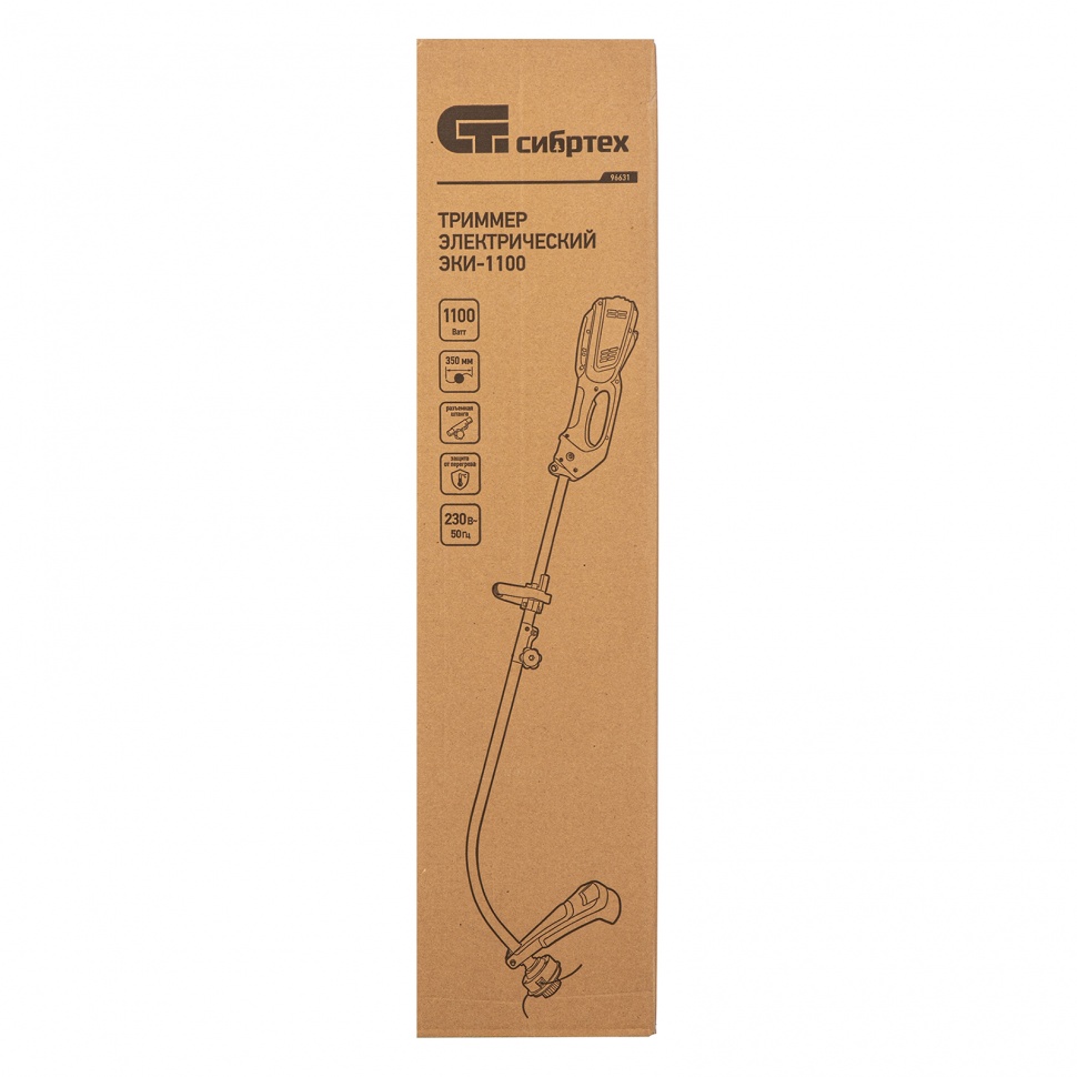 Электрический триммер Сибртех ЭКИ-1100 96631 мощностью 1100 Вт, с разборной штангой, предназначен для скашивания мягкой газонной травы — для этого предусмотрена катушка с леской, обеспечивающая ширину прохода 350 мм. Изогнутая штанга позволяет легко обрабатывать участки даже в труднодоступных местах: вдоль заборов, стен, тротуаров и вокруг деревьев. Триммер не требует приготовления топливной смеси и заправки, не нуждается в постоянном техническом обслуживании, поэтому с ним справится даже неопытный пользователь.