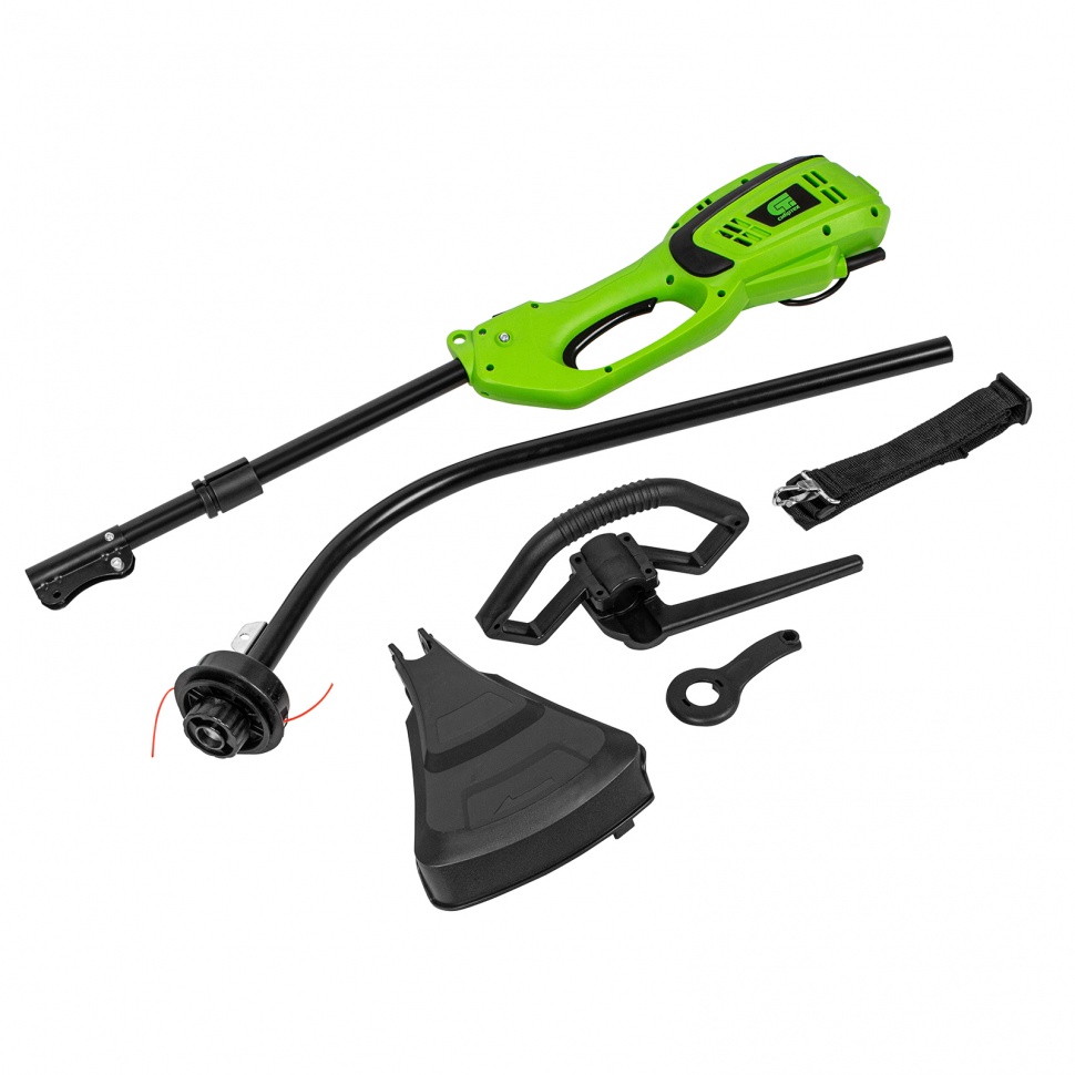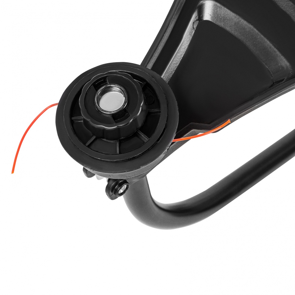 - Эргономичность — плечевой ремень снижает нагрузку на руки, а D-образная ручка обеспечивает надежный хват и облегчает управление триммером.